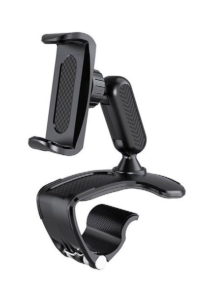 Denna telefonhållare är ett utmärkt val för alla bilresor. Med en stark klämma monterar du den antingen framför ratten eller i solskyddet. Den har ett stadigt och bra grepp för att hålla mobilen på plats under resan. Du kan ha mobilen ståendes eller liggandes då hållaren går att rotera 360°. 90x90x80mm.