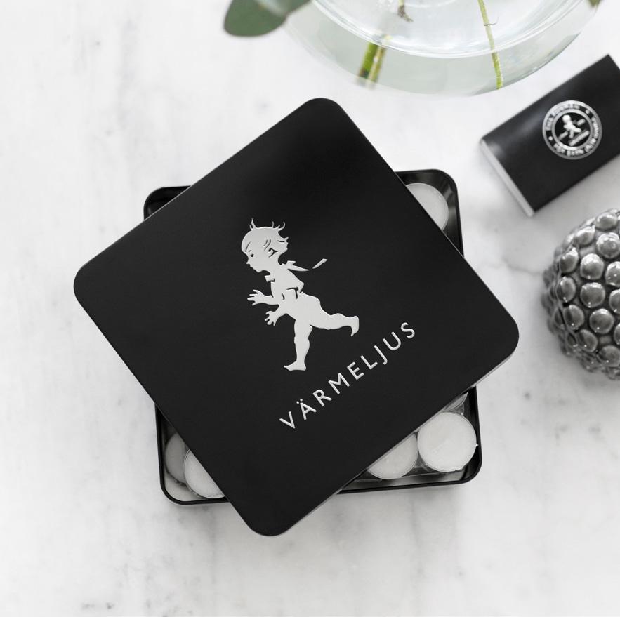 Ett paket innehållandes en smart förvaringslåda för värmeljus samt ett stilrent tändsticksrör i plåt.Den dekorativa förvaringslådan för värmeljus har plats för 100 stycken värmeljus. Värmeljus ingår ej.Tändsticksröret i plåt innehåller cirka 100 st extra långa svenska kvalitetständstickor, tillverkade i Tidaholm av asp från svenska skogar med ett runt utbytbart plån på undersidan.