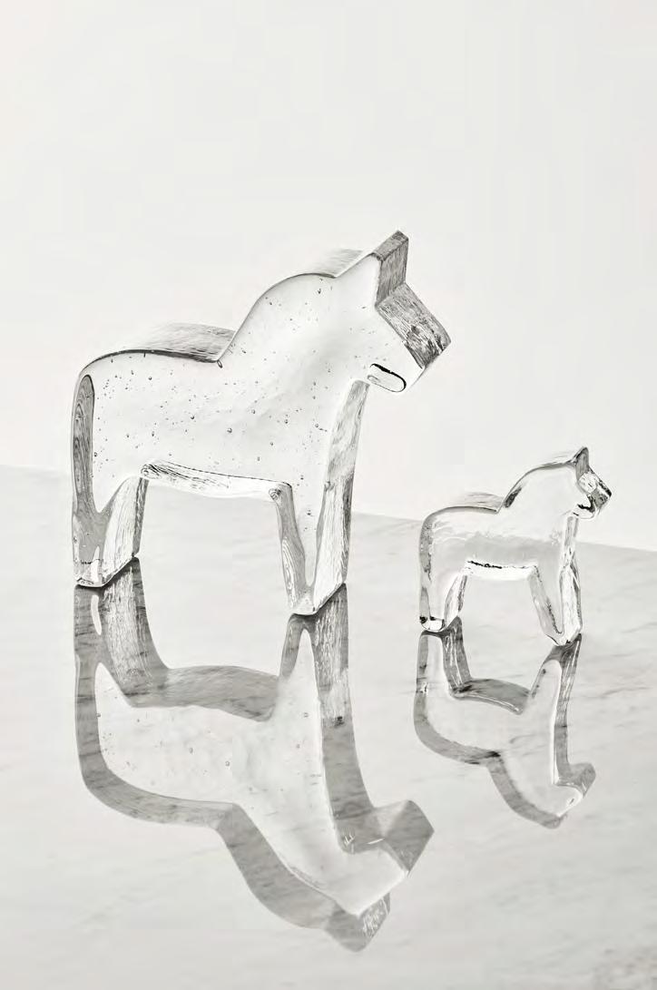 Dekorativ dalahäst från Kosta Boda i klart glas. En modern tolkning av svensk hantverkstradition som passar både ensam eller tillsammans med andra dekorationer.