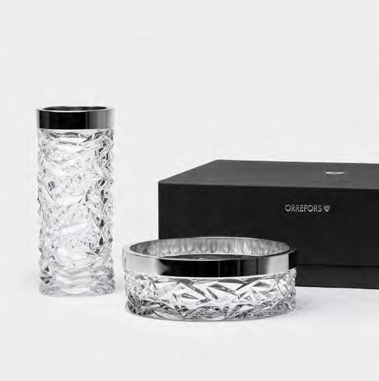 Exklusivt set från Orrefors med Carat skål och vas designade av Lena Bergström. Slipad kristall med ett gnistrande, modernt uttryck.