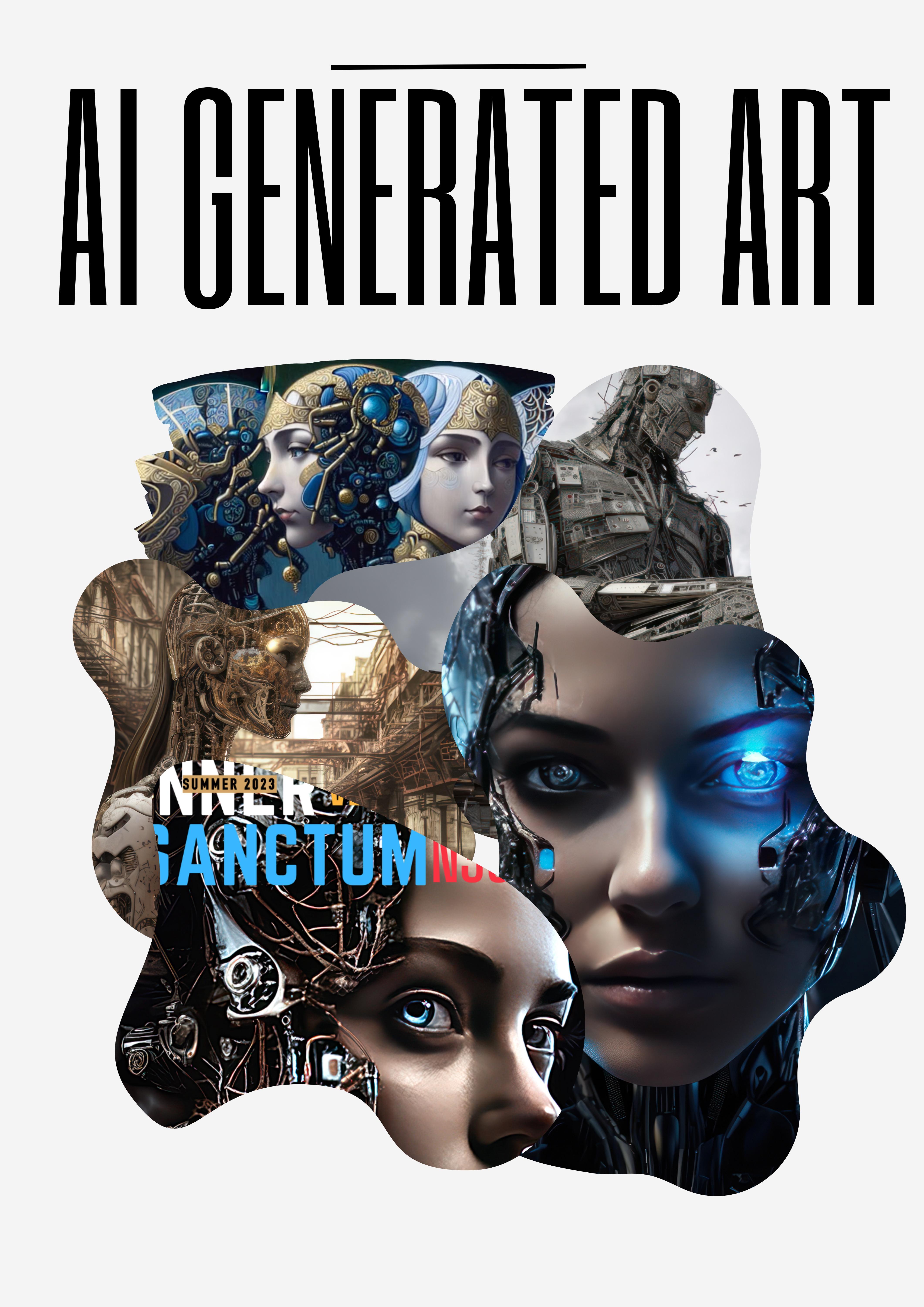 Our Cover page, Pages 6,7,10,11,16,21,24,92,93,98,99, 130,131, 134,135, 231, 243. Each piece offers a glimpse into the power of AI and its transformative impact on the world of art, your visual experience and reflecting our dedication to pushing the boundaries of technology –inspired aesthetics. Welcome to the mesmerizing realm of AIgenerated artwork.
