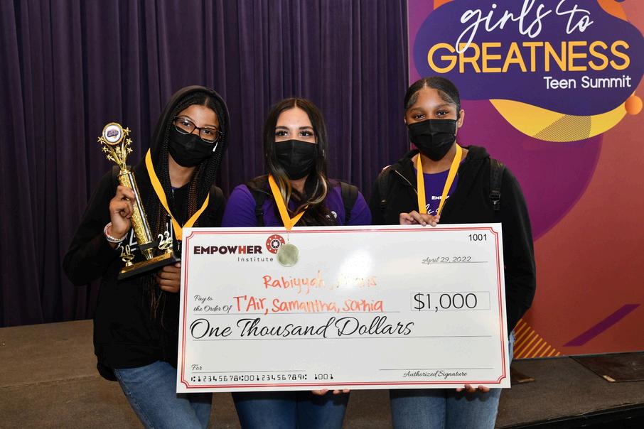 Our eighth and ninth grade classes have been challenged to identify a social justice issue important to them and develop a project proposal outlining how a S.T.E.A.M (Science, Technology, Engineering, Arts & Math) technique can be used to address the problem. The challenge is designed to foster innovation, engage in social justice, and develop 21st Century Skills – critical thinking, communication and collaboration. In completing the challenge, students must: (1) identify and learn about a pressing issue that impacts their community; (2) use creativity and innovation; (3) communicate with group members to complete assignments; (4) conduct research and develop a project proposal presentation. The top three teams in each grade level have been pre-selected to present their project proposal to a panel of judges during the Girls to Greatness Teen Summit. Judges will award first ($1000), second ($500), and third ($250) prizes to the winners in each grade level. Youth in the audience may vote for fan favorite, who will receive an additional ($100) prize.