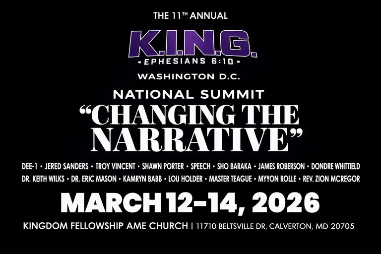 MOVEMENT, Pastor Matthew Watley, Kingdom Fellowship AME Church and our entire Summit Leadership Team, it is our great pleasure to welcome you to the 11th Annual KING National Summit: Changing the Narrative. We are looking forward to providing you with a phenomenal, inspiring, and impactful experience.