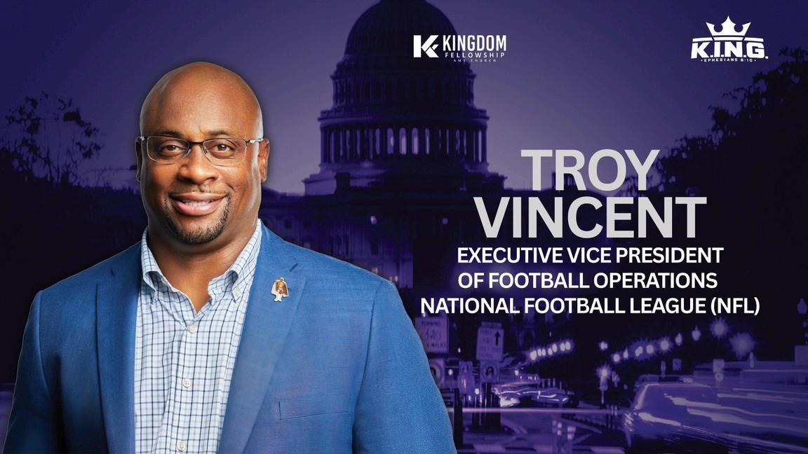 TroyVincentistheExecutiveVicePresidentofFootballOperationsattheNationalFootball League,beginninghisfootballcareerasthe7thoverallpickinthefirstroundfortheMiami Dolphinsinthe1992NFLDraft After15seasonsofplayingintheleague,Troycontinuesto benominatedfortheProFootballHallofFameandhasbeeninductedintotheHallof FameforthePhiladelphiaEagles,theStateofPennsylvania,theUniversityofWisconsin andPennsburyHighSchool.