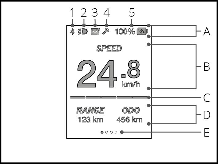 The RideDash EVO gives the rider extensive bike and ride information on a beautiful, large colour screen placed in the centre of the handlebar. Operated by the RideControl Ergo series, it shows clear and large indications of items like speed, distance, battery status, remaining range, and other useful information.