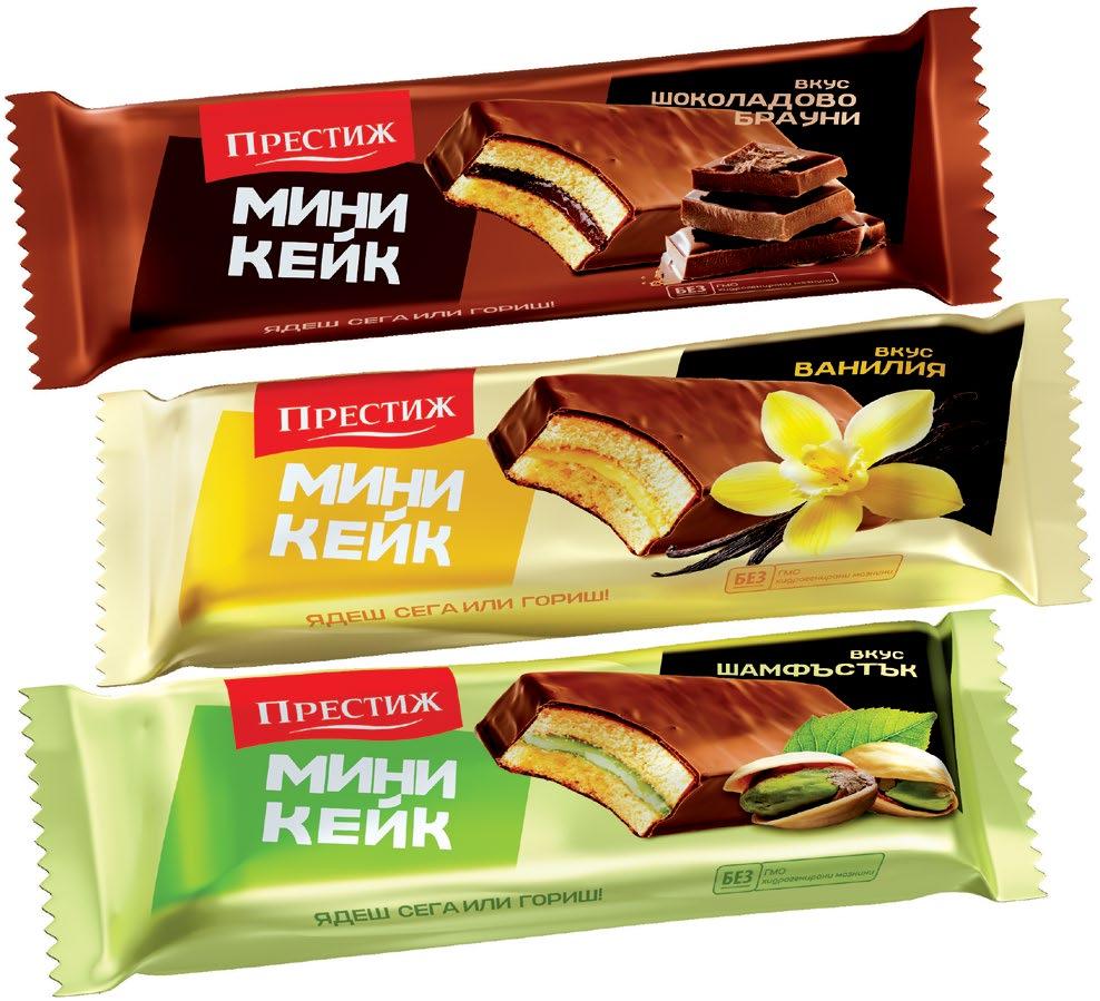 Мини кейк шоколадово брауни 50 г - 3800061630744 Престиж Мини кейк шамфъстък 50 г - 3800061630751 Престиж Мини кейк ванилия 50 г - 3800061630768