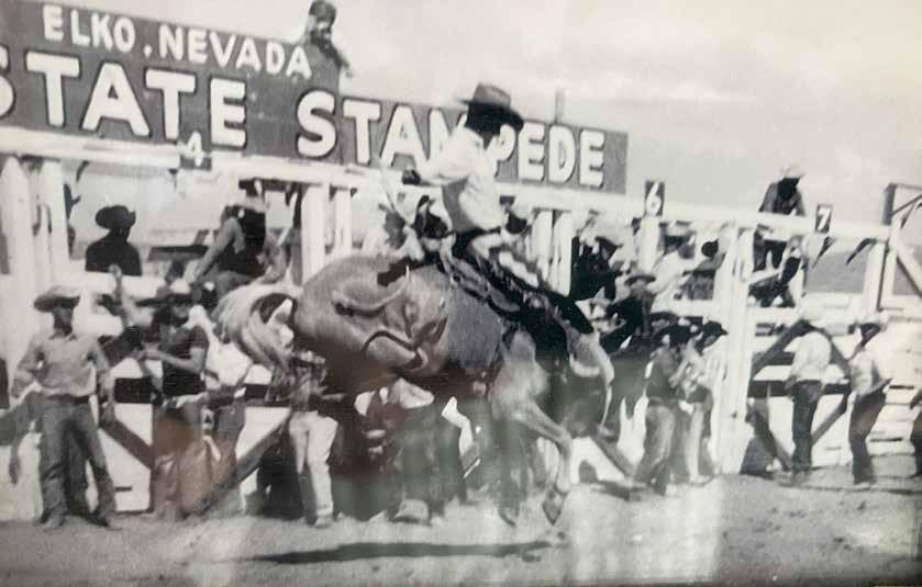 While they were kids, Jerry and Harold loved to ride anything that bucked from milk cows to mustangs. As they got older and better, this became a major part of their lives. Jerry started rodeoing in the 1950’s and continued into the 1960’s winning many championships. He won the Nevada Cowboys Association saddle bronc title 5 times and the AllAround cowboy title once. In the ‘50’s & 60’s, the Reno Rodeo had a special bronc riding for Nevada cowboys. Jerry won this event 3 times and retired the trophy. At one of these rodeos after Jerry won the bronc riding, multiple world champion cowboy Casey Tibbs offered Jerry the chance to travel with him on the professional circuit. But since Jerry had a job and a young family, he declined the offer.