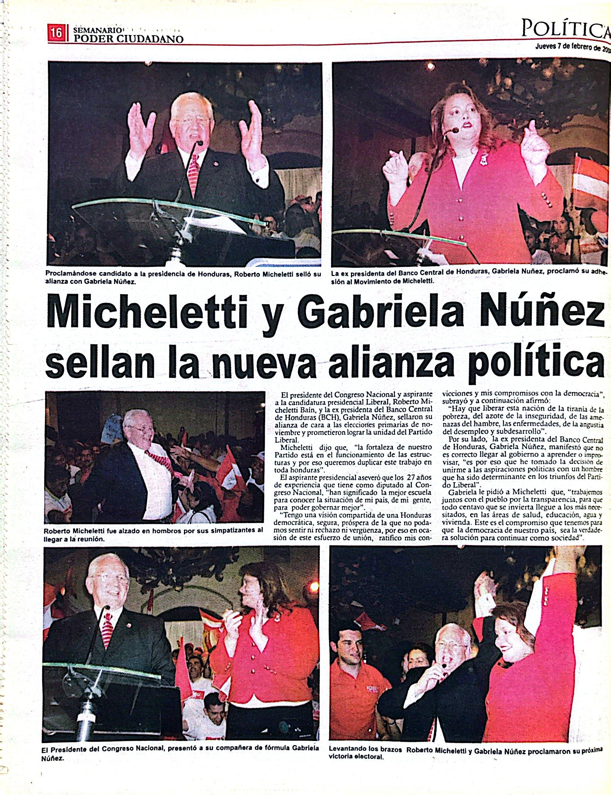 Micheletti y Gabriela Núñez sellan la nueva alianza política. P. 16