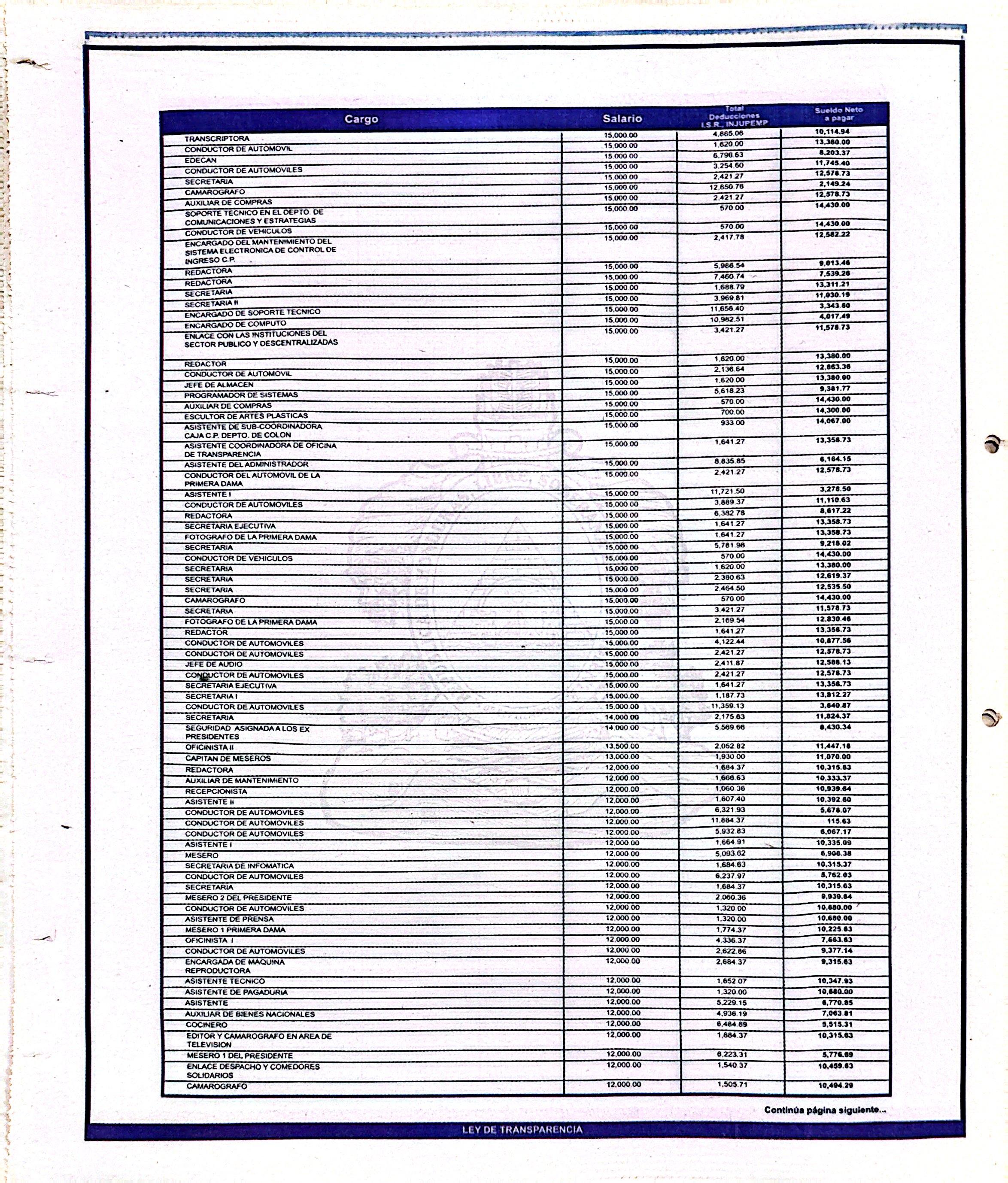 Ley de Transparencia: Planila de Sueldos y Salarios. P. 26