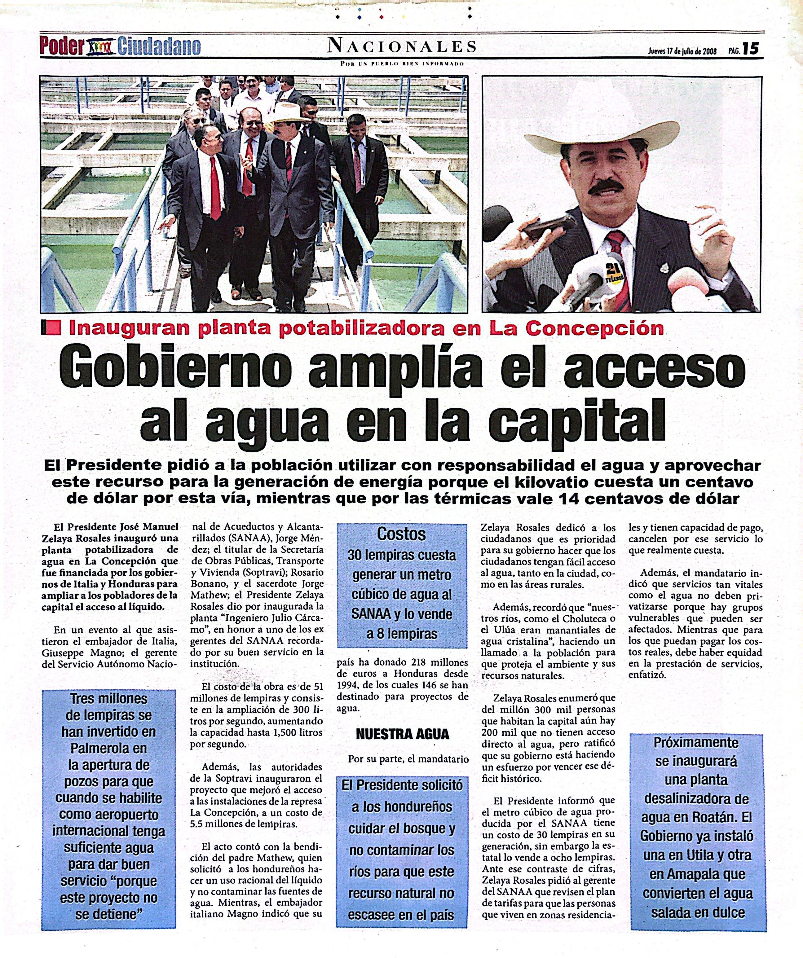 Gobierno amplía el acceso al agua en la capital. P. 15