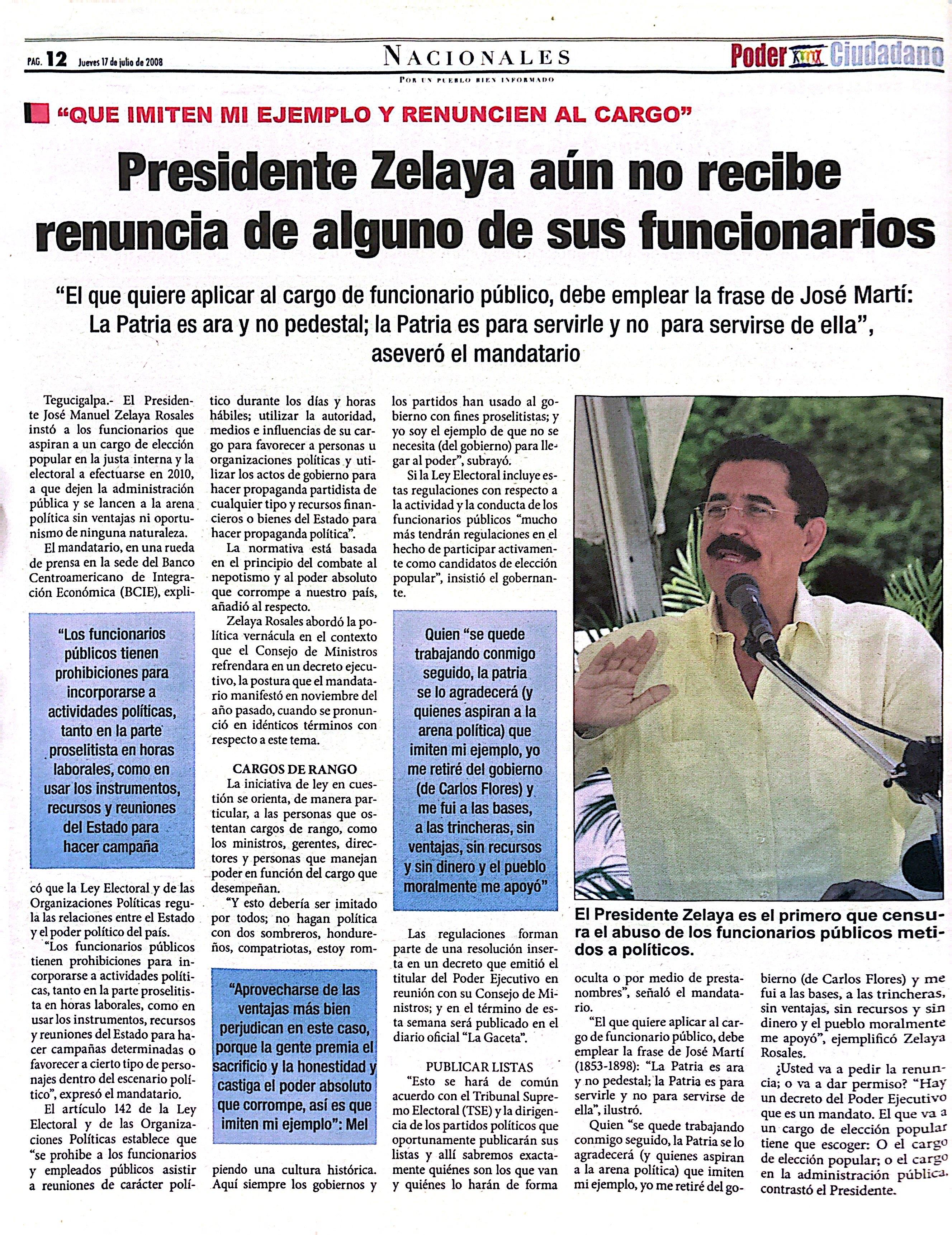Periódico oficial del gobierno del Poder Ciudadano de Honduras. Presidencia de José Manuel Zelaya Rosales (2006-2009)