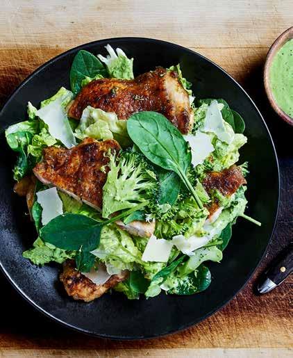 5. Viimeistele annos rucolalla sekä valkosipuli- ja chilikastikkeilla.