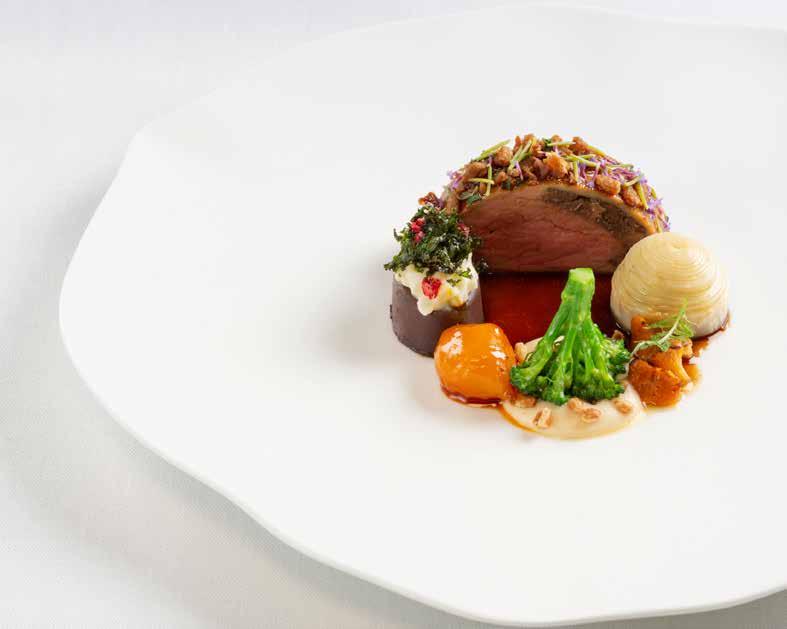 Kotimaista ankkaa, veripalttua, juuriselleriä ja keltajuurta vuoden 2018 MM-kisojen pääruoka-annoksessa.