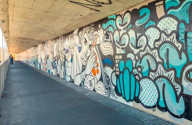 This bridge was originally single storey and opened in 1934; but it was reconstructed as a two-storey bridge 20 years ago as part of the northern bypass for motorway traffic. It is undeniable that this two-storey behemoth does not inspire love at first sight. Its charms have to be discovered – with an aperitif watching the sunset from the middle of the bridge or at the annual water fight between the two quarters 4056 and 4057 at either end of the bridge.