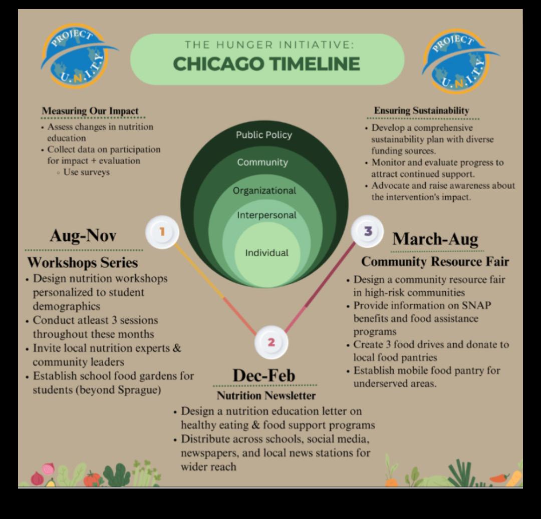 In addition, our interviews with Mrs. Nicole Laport of EAT Chicago, and Ms. Ann Hofmeier of Sprague Elementary provided us with deeper insight into FI in our nearby communities, emphasizing the immense need for nutrition education and shedding light on the stigma associated with asking for help in the context of FI.