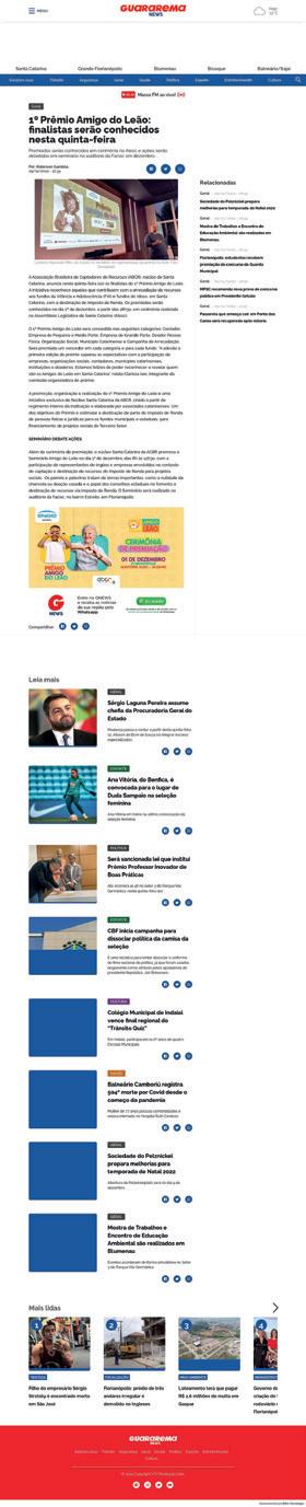 Os vencedores da 2ª edição do Prêmio Amigo do Leão serão conhecidos na Cerimônia de Premiação, a ser realizada em Florianópolis no mês de agosto de 2024, em loca a ser definido, com coquetel de abertura para o público convidado e imprensa.