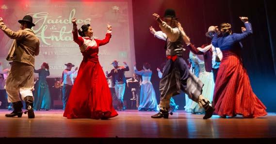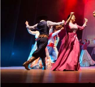 Apresentação do grupo de danças em eventos tradicionalistas no sul do Brasil.
