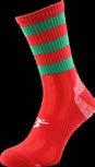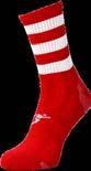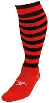 Contrast hoop Pro sock 60% nylon 40% cotton. 1-1¼” hoops. Contoured to aid support and fit. Wrap-around ventilation allows feet to breathe. Maximum toe protection. Ultimate technology heel pad. Colours: black/white, black/red, black/amber, white/maroon, red/black, red/white, maroon/amber, maroon/sky, gold/black, green/white, green/gold, navy/white, navy/red, navy/sky, royal/white, royal/yellow, royal/gold.