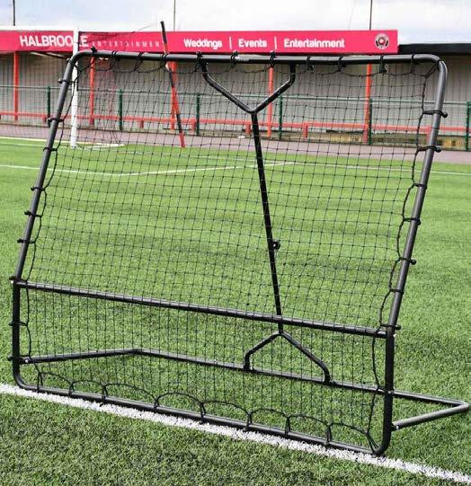 Develop your skills on the training pitch or at home in the garden with this Pro Two Angled Rebounder. Designed to cover all age groups, the two angled rebounder offers a large top angled rebounder for feet, knees, chest and head control, whilst also offering a low floor pass rebounder for passing and feet control. Top section size: 6ft x 5ft (182.88cm x 152.40cm). Lower section size: 6ft x 1.5ft (182.88cm x 45.72cm). Heavy duty all-weather aluminium powder coated frame. Various angle adjustments. It can be used on any surface. Extremely high rebound properties £134.95