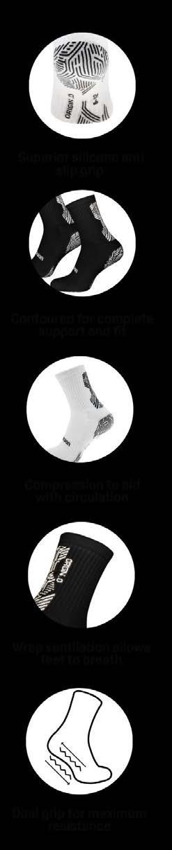 Improve your game with Murphy’s Grip socks. Designed to grip your feet to the sole of your boots. The grip aids in acceleration, deceleration, change of direction. Superior silicone anti slip grip. Superior silicone anti slip grip. Ankle Contoured for complete support and fit. Wrap ventilation allows feet to breath.
