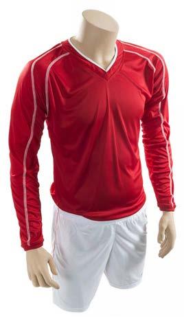 A stylish two-part set, featuring a long-sleeved V-necked shirt and coordinating shorts. 100% soft-touch polyester fabric is used for the shirt body and shorts, with ribbed polyester detailing to the neckline and cuffs, for added comfort and durability. An overlock contrasting stripe design to the shoulders is continued with side-stripes to the shorts.