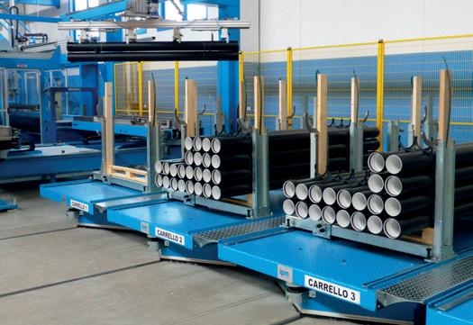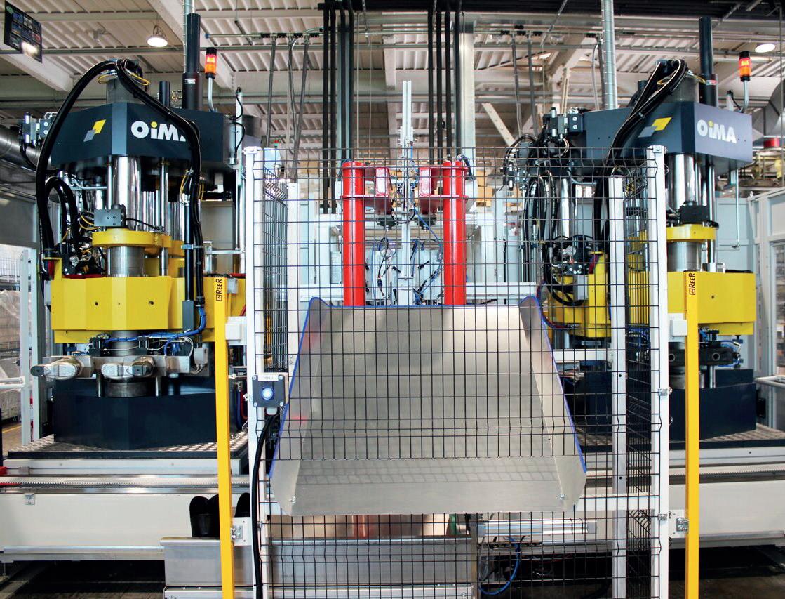 considerable energy savings. Since the lower placing of the burner, an intermediate staircase was created to access to it and a staircase from the gallery was also created to access the oven roof and to the fumes extraction chimney. Moreover, as the floor of the customer was not perfectly flat, with a gap of more than 10 cm from one side to the other, additional adjustable plates have been realised to level the machine. All the modifications made to this special version add to the standard characteristics of Rima Team machines, such as the sliding doors of the oven, used for machines of 4,000 mm upwards, which are more resistant to prevent deformations, the robust structure of the moulding chamber made of structural steel to limit heat deformation, and the high-efficiency heat-insulating panels, treated with special paints that increase heat retention inside the chamber. Correctly directed air flows directly onto the mould, thanks to the baffles on the delivery manifold, together with the latest generation burner type, with