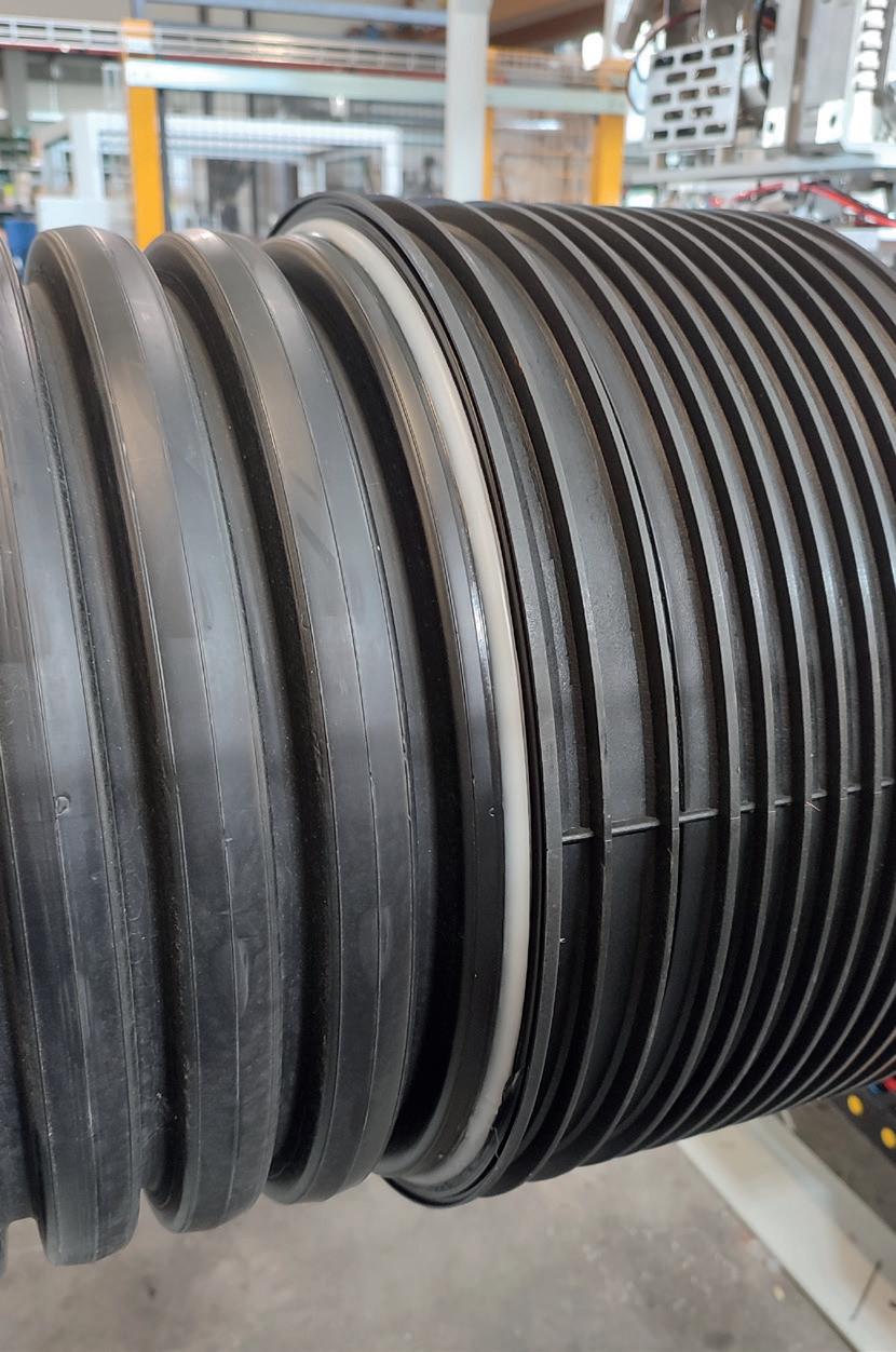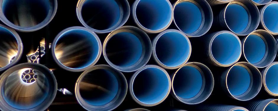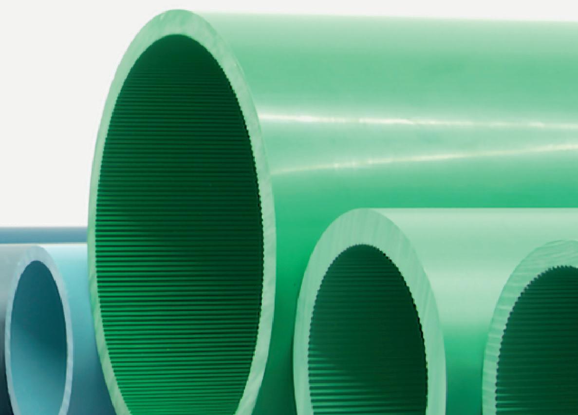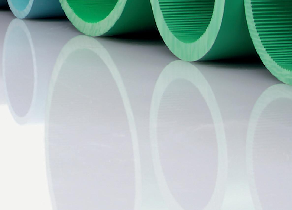 the two outer layers of virgin material, and where the aesthetic aspect is not compromised. The thickness of the inner layer of recycled plastic represents 60-70% of the total, while the inner and outer layers of virgin material, usually high-density polyethylene, represent around 10-20%.
