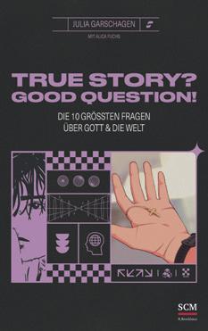 Schwarzer Einband, lavendellila Schriftzug und Abbildungen, die an Anime erinnern: Die Gestaltung von „True Story? Good Question!“ zielt klar auf geschmackliche Trends der Generation Z. Das Buch behandelt zehn große Fragen, die die Lebenswelt junger Menschen betreffen und sie von einem Glauben an Gott abhalten können. Fragen zu Klimawandel, Missbrauchsskandalen in der Kirche, Rassismus, Unterdrückung von Frauen, soziale Gerechtigkeit. Die Autorin kann dazu so einiges erklären und richtig stellen. Julia Garschagen tut das auf eine sympathische und authentische Weise, ohne erhobenen Zeigefinger und trockene Theorie. Es gelingt ihr, die Fragen leicht verständlich, in einfacher Sprache zu beantworten und die Themen in die Lebenswelt junger Menschen einzuflechten.