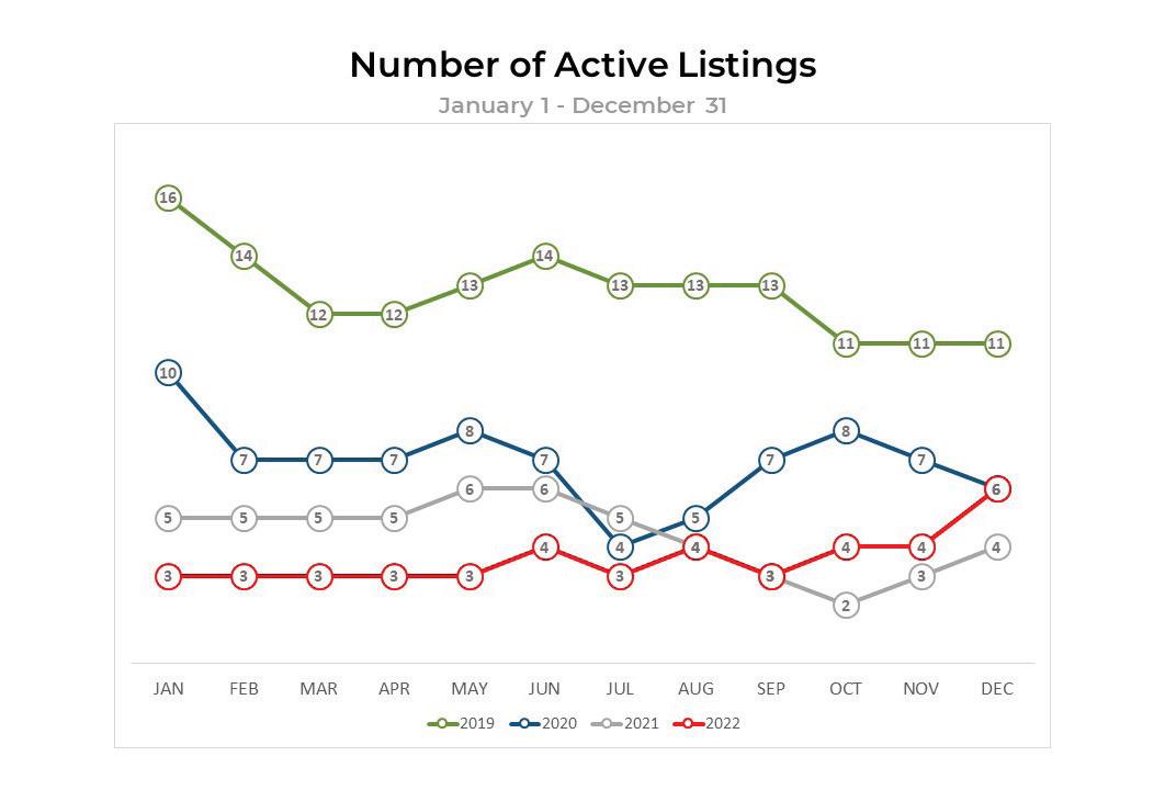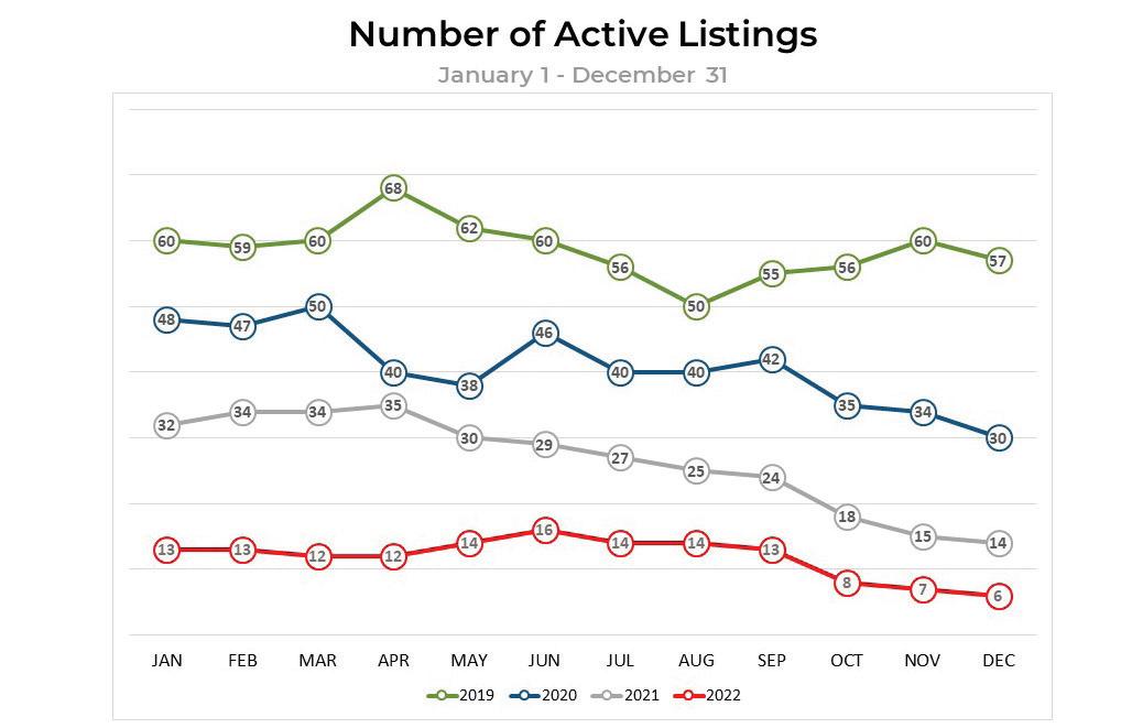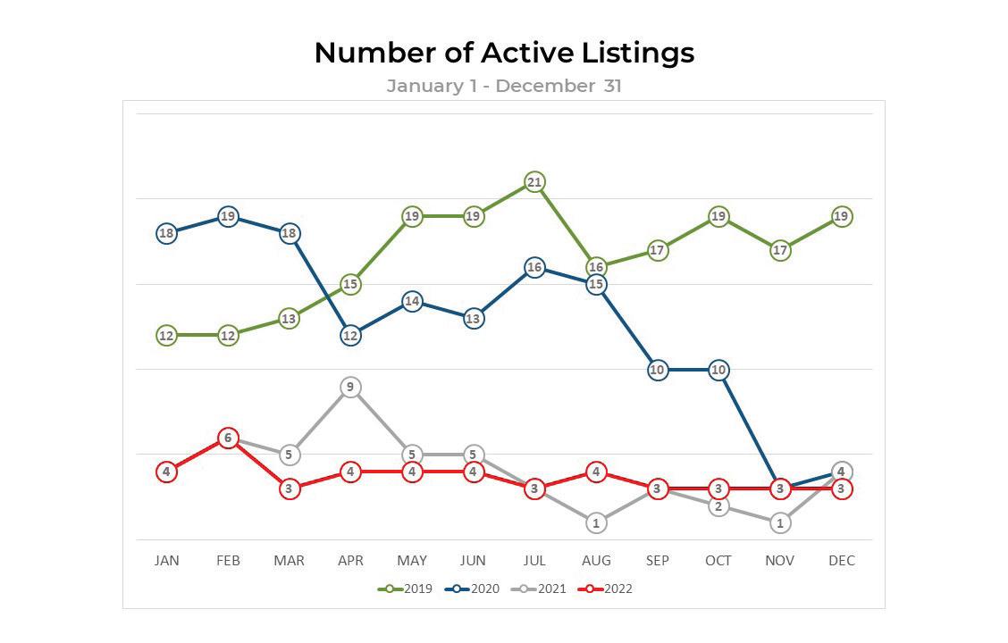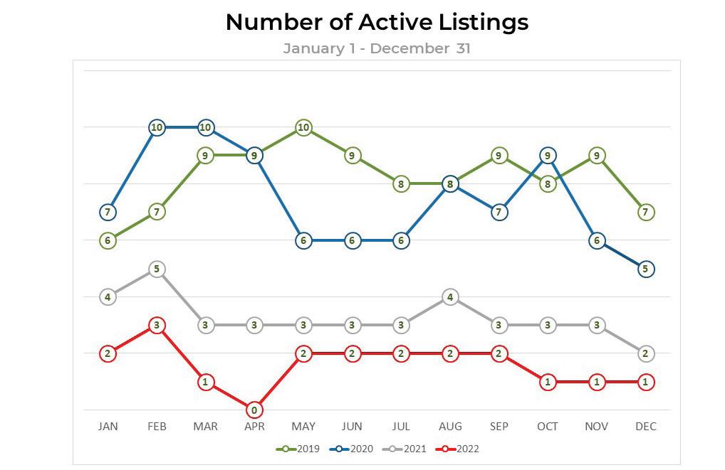 • 75% decline in sales from 2021 to 2022 reflects the fact that there are a limited number of developer or re-sale waterfront home sites available.