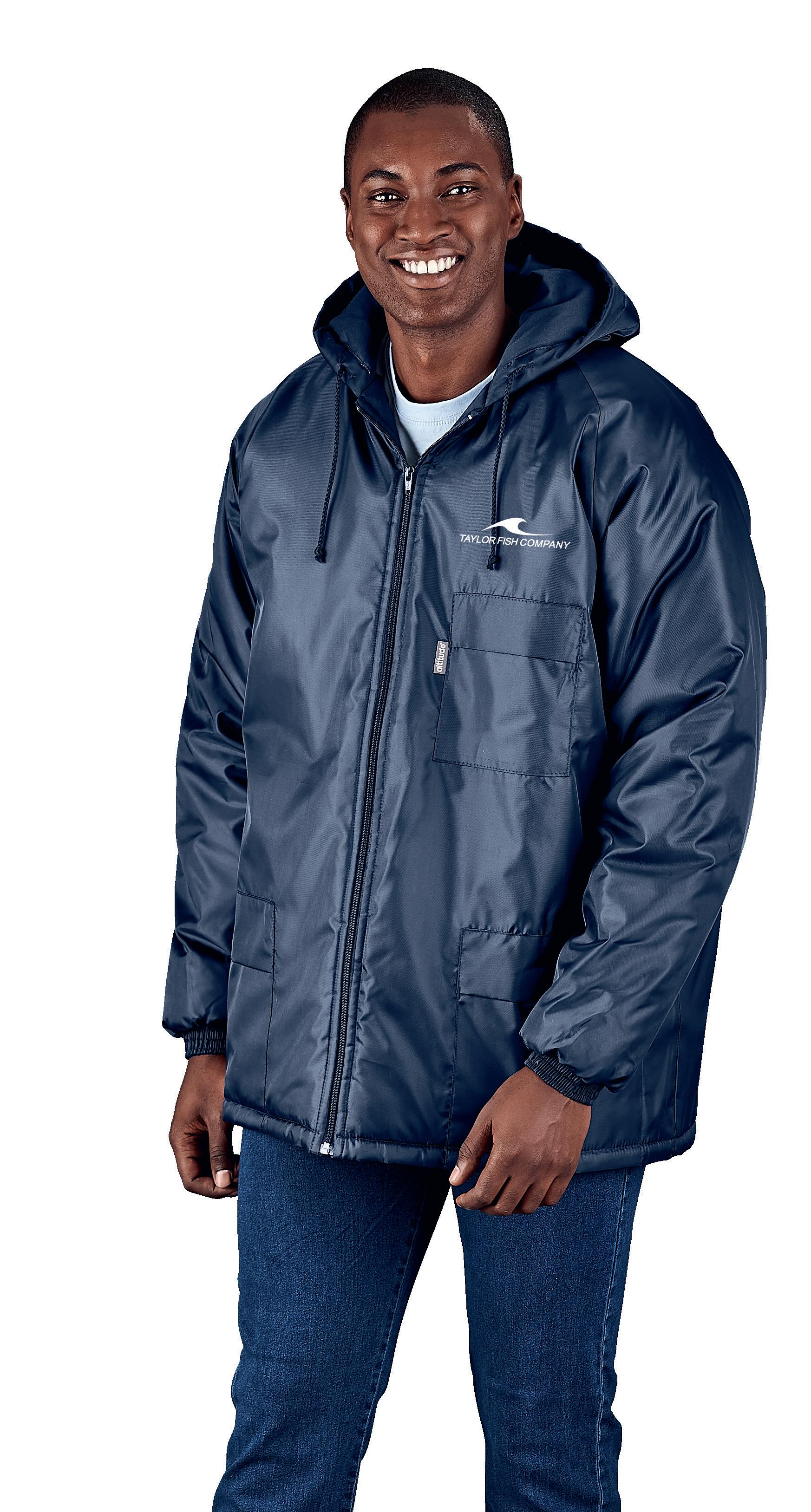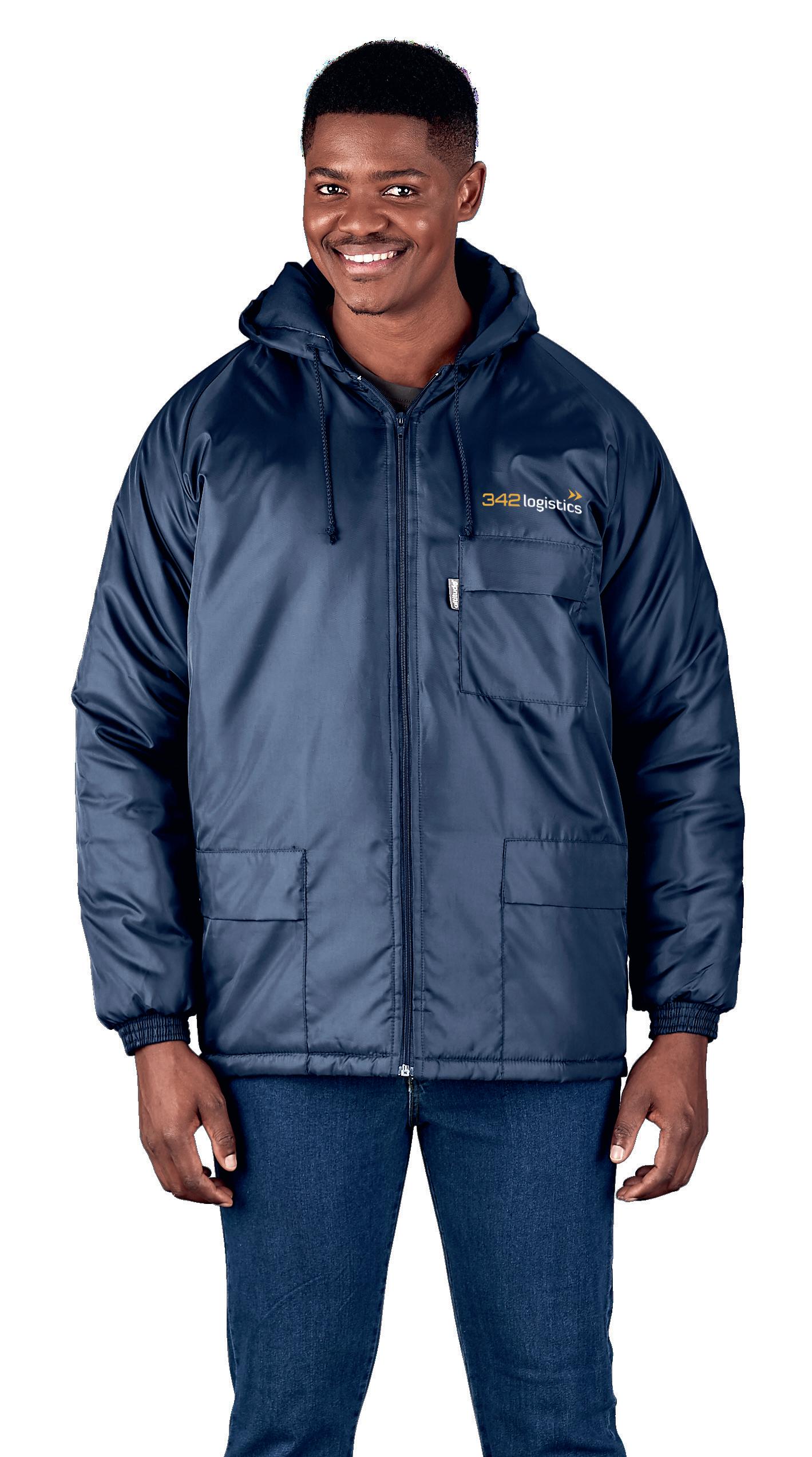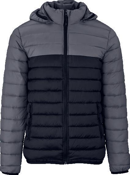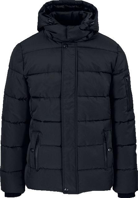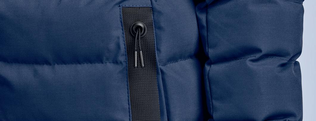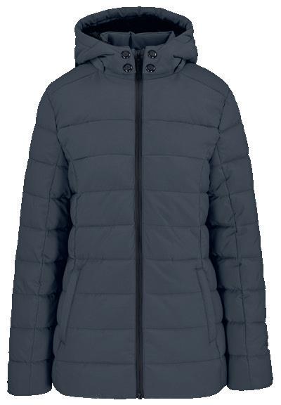 Fabric 100% polyester with PVC coating, polar fleece lining, polyester wadding • fully padded jacket with hood • elasticated cuffs • inner chest pocket • welt pockets • water resistant
