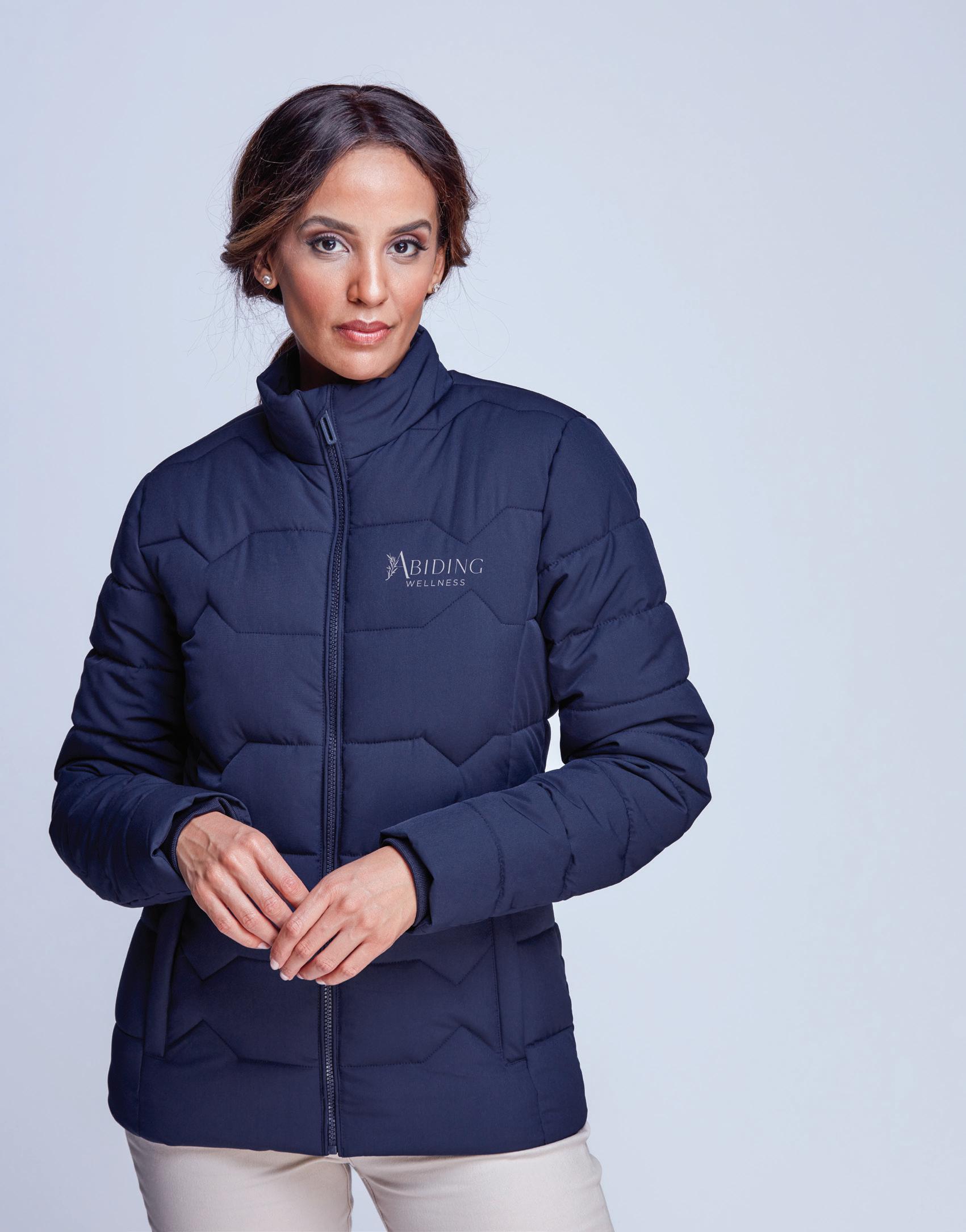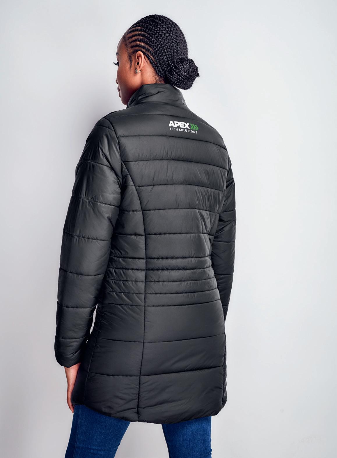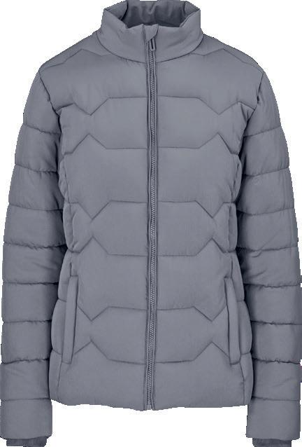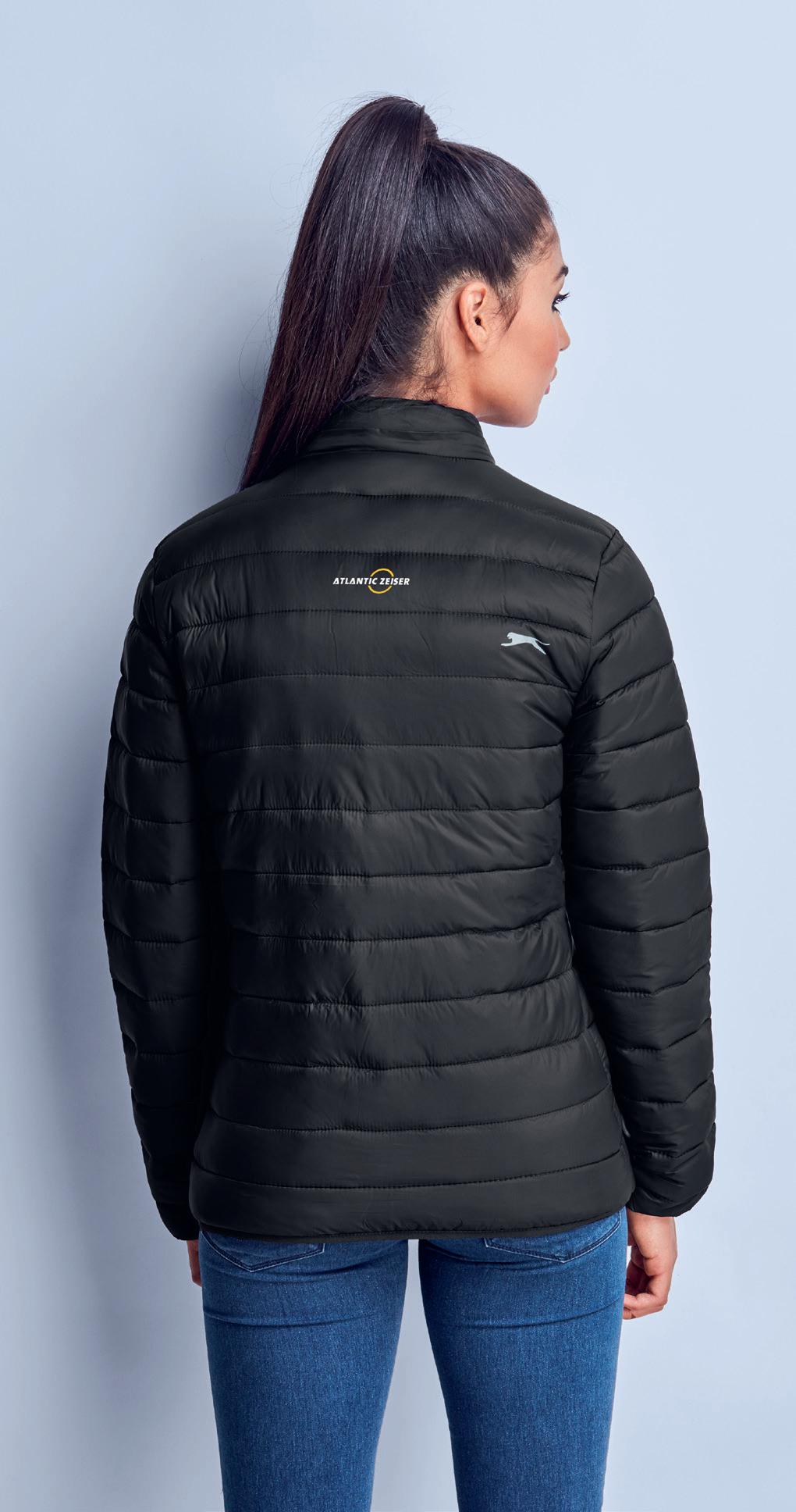 LADIES ALEX VARGA ASCENTIA JACKET Fabric 100% nylon • fully padded quilted outer • full chunky zip with branded zip puller • slanted pockets with chunky zips and branded zip pullers • sleeves with storm cuffs • plush fleece inner • Alex Varga silicone logo • water resistant • wind resistant BL HALF CHEST (CM) STANDARD FIT S M L XL 2XL 3XL 4XL 52 55 58 61 64 67 70 PLUSH FLEECE INNER ALEX VARGA SILICONE LOGO ON BACK NECK COLLAR 106 HEAVYWEIGHT JACKETS 105