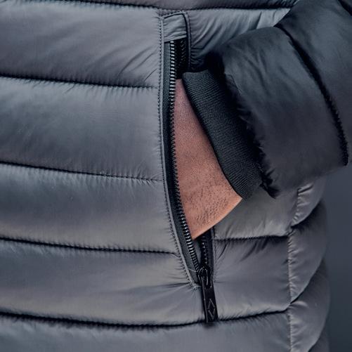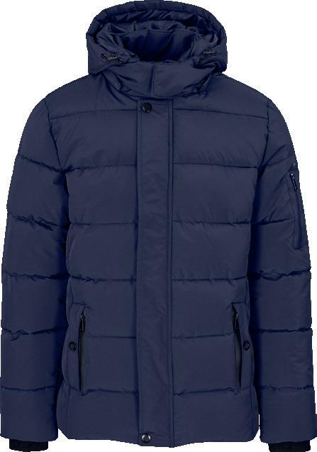 Fabric 100% polyester • lining: 100% polyester • padding: polyester • fully padded and quilted outer • full zip with branded zip puller • storm flap • chin protector • knitted storm inner collar • styled welt pockets • elasticated hem insert for snug fit • hood • rubber eyelets on pockets and hood • inner pocket • water resistant • wind resistant BL MG N R HALF CHEST (CM) STANDARD FIT S M L XL 2XL 3XL 4XL 51 54 57 60 63 66 69 109 110 HEAVYWEIGHT JACKETS
