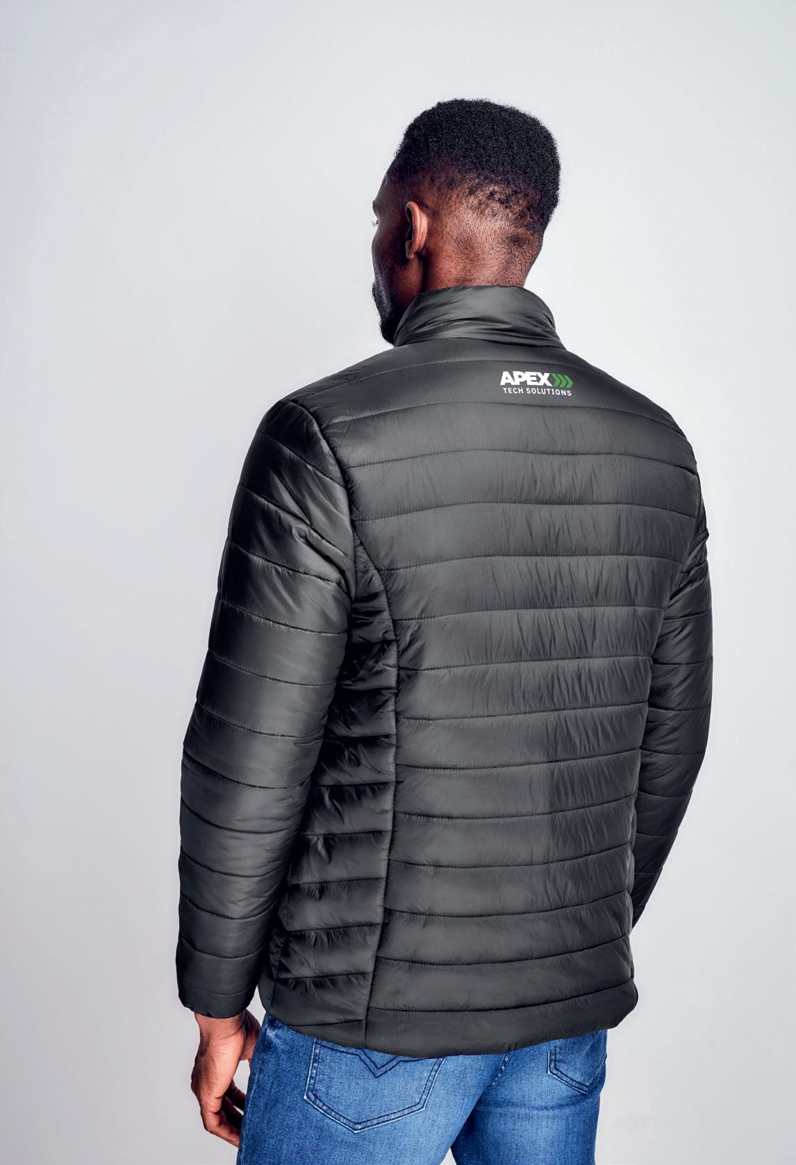 MENS ALEX VARGA ASCENTIA JACKET Fabric 100% nylon • fully padded quilted outer • full chunky zip with branded zip puller • slanted pockets with chunky zips and branded zip pullers • sleeves with storm cuffs • plush fleece inner • Alex Varga silicone logo • water resistant • wind resistant BL HALF CHEST (CM) STANDARD FIT S M L XL 2XL 3XL 4XL 5XL 55 58 61 64 67 70 73 76