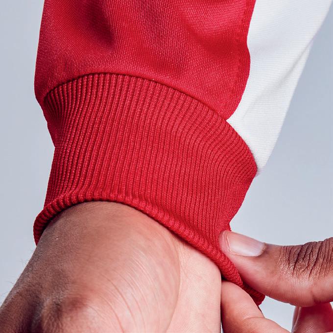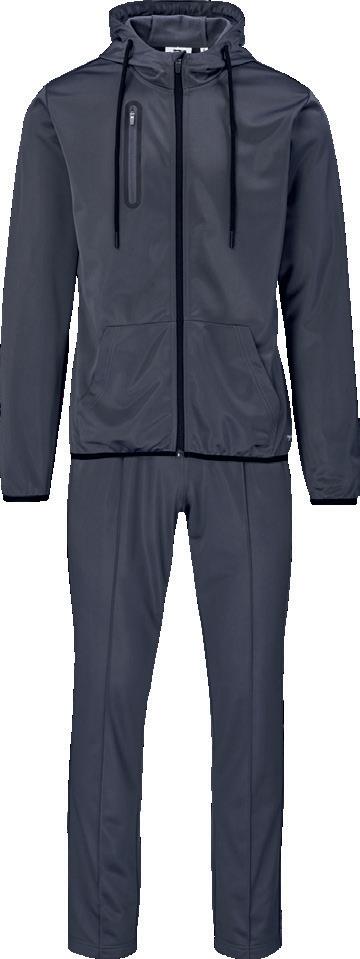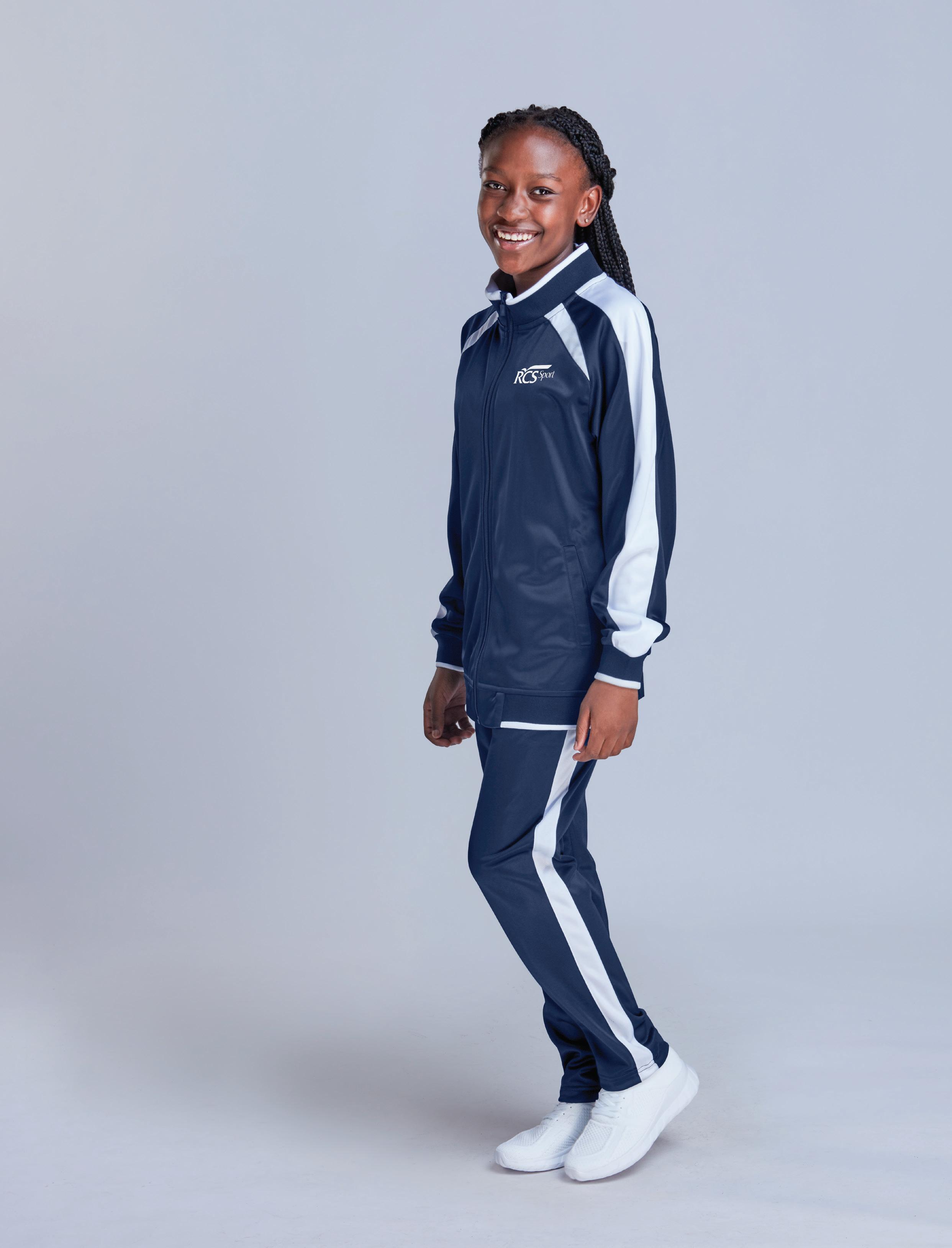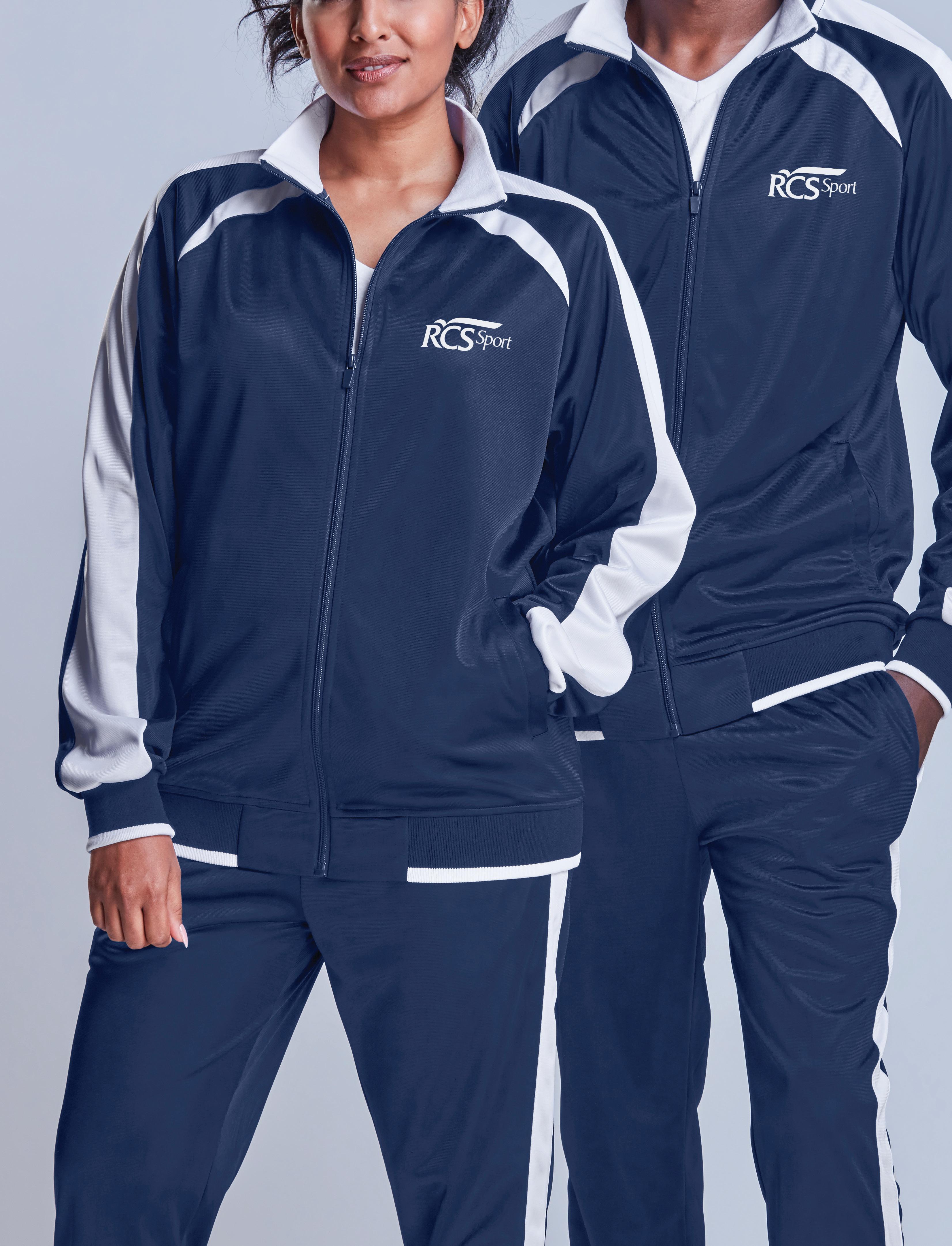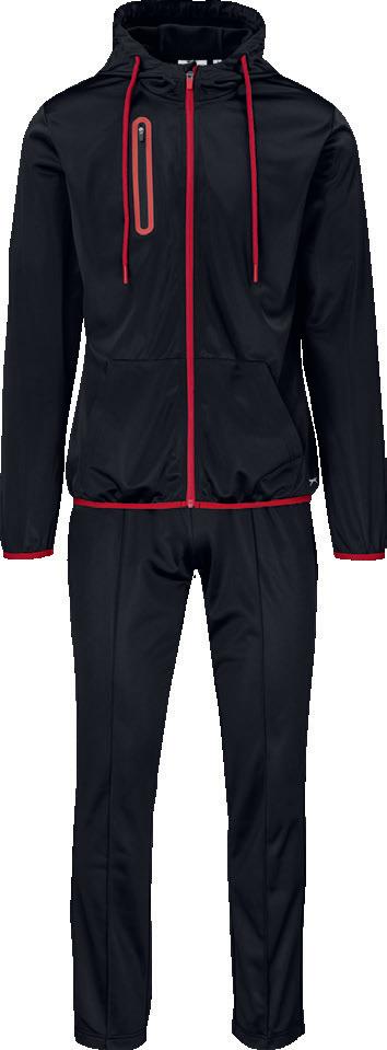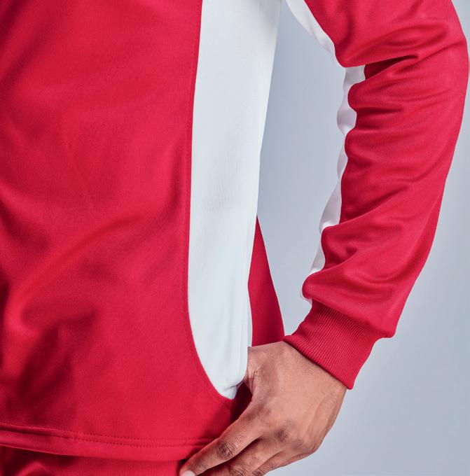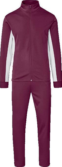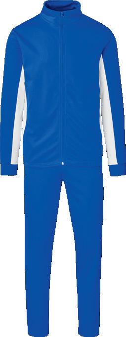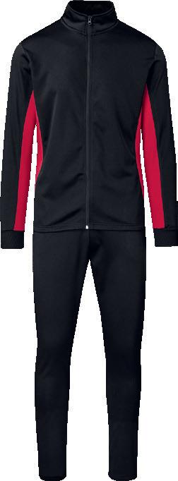 Weight 210g/m2 Fabric 100% polyester, trilobal sports knit • top: contrast panel detail • ribbed collar, cuffs and hem • bottom: elasticated waistband with inner drawcord • contrast panel details • tapered legs BL BLR DG1 N