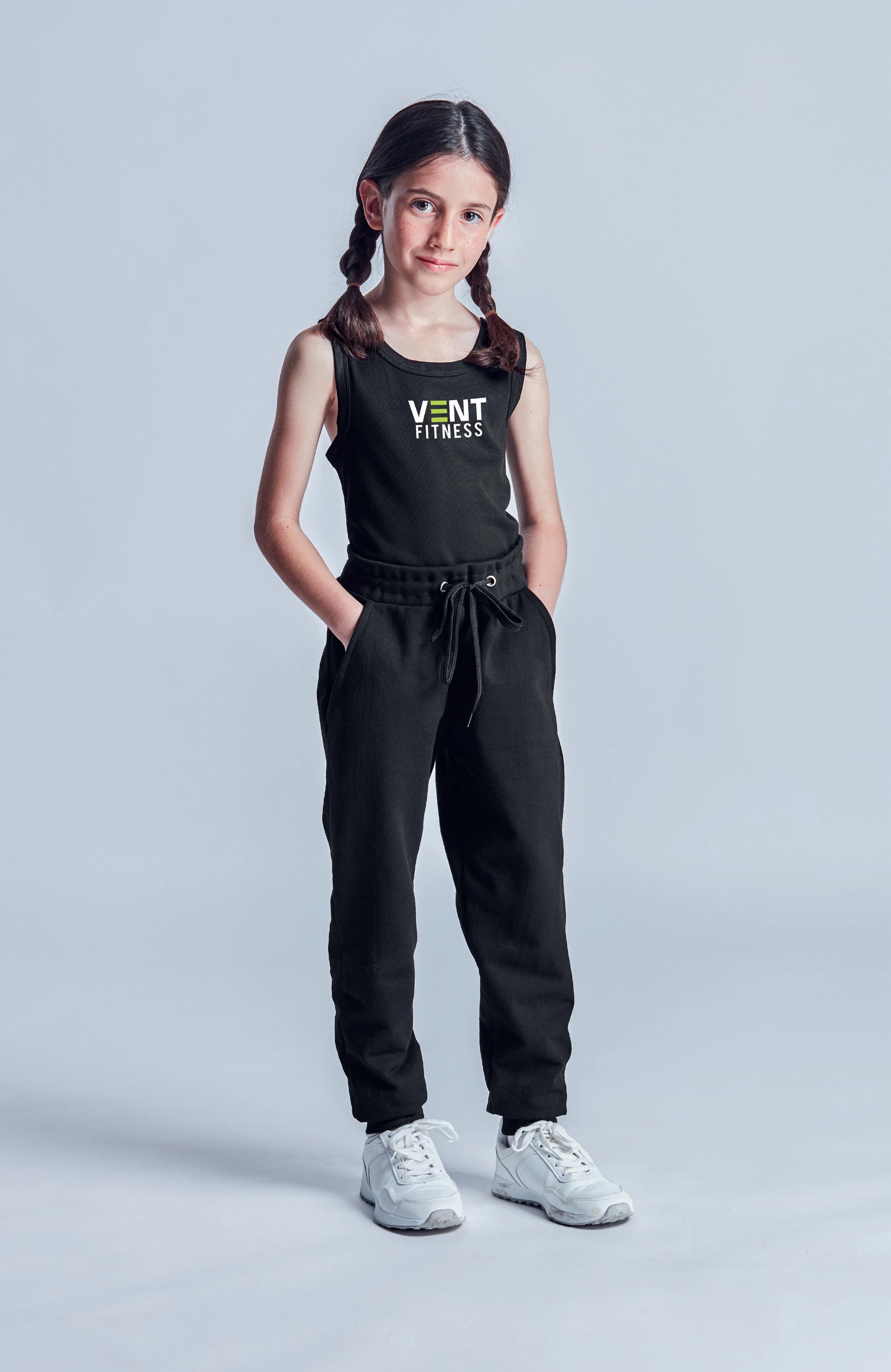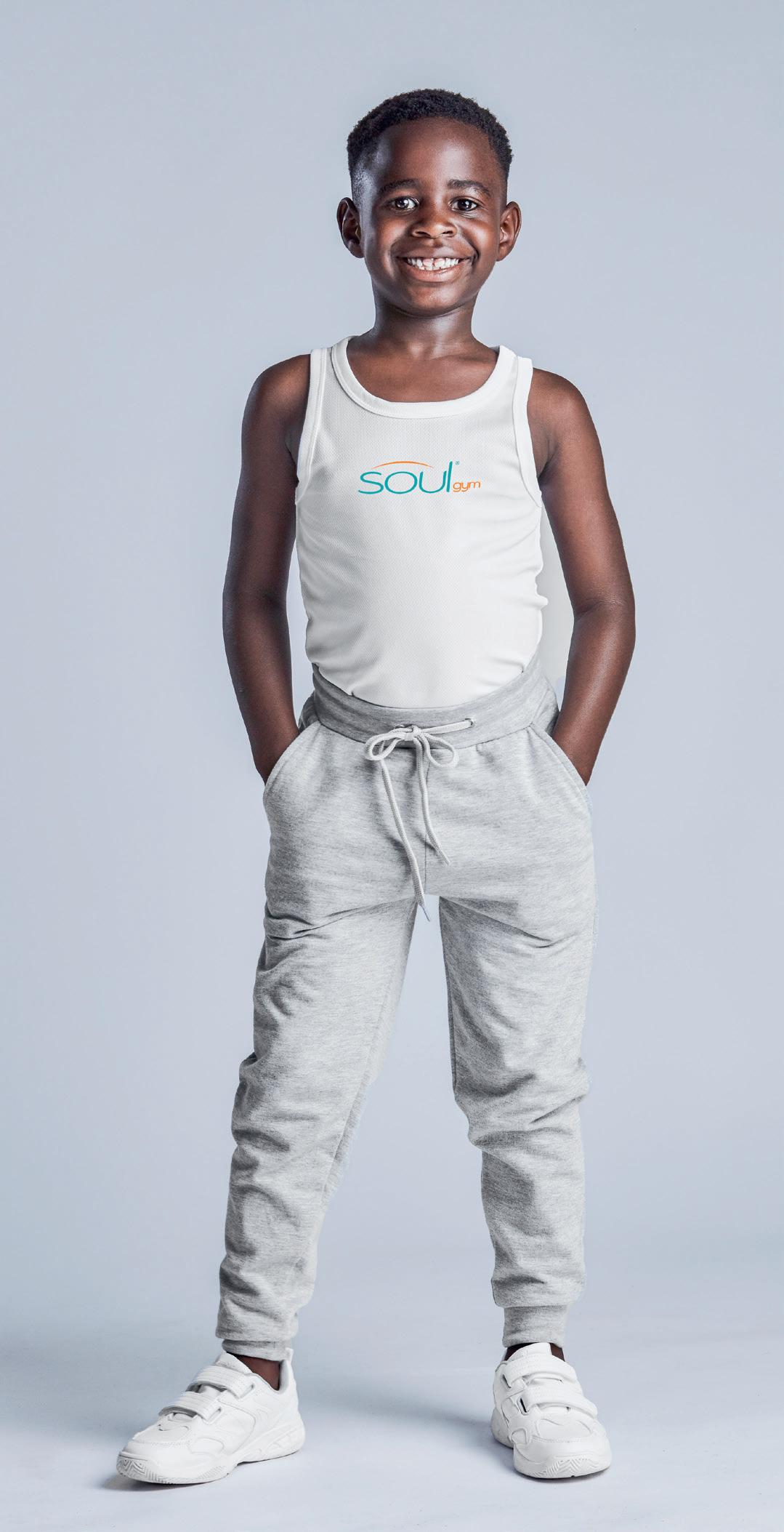 240g/m2 Fabric superior filament fabric • elasticated waistband with drawcord • two side pockets • fashionable tapered trouser legs • rib finish BL GY HALF WAIST (CM) STANDARD FIT AGE: 8 10 12 14 CM: 26 29 32 35 118 117 KIDS