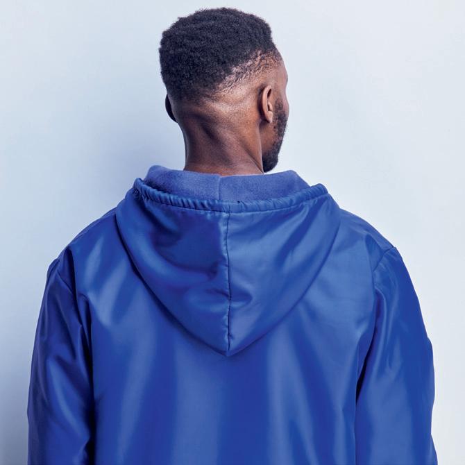 Fabric 100% oxford nylon outer, 55% cotton, 45% polyester blend towelling • water resistant • terry towelling inner • full zip with metal puller • inner pocket • ribbed cuffs • concealed hood • drawcord at hem • welt side pockets BL G N R RB HALF CHEST (CM) L RELAXED FIT • M STANDARD FIT S M L XL 2XL 3XL 4XL 5XL 60 62.5 65 67.5 70 72.5 75 77.5 ALT-ATK