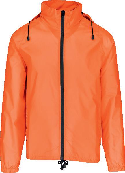Fabric 100% polyester • water resistant • elasticated cuffs • welt side pockets • metal eyelets under armhole • concealed hood with zip closure • drawstring with toggles at hood and hem