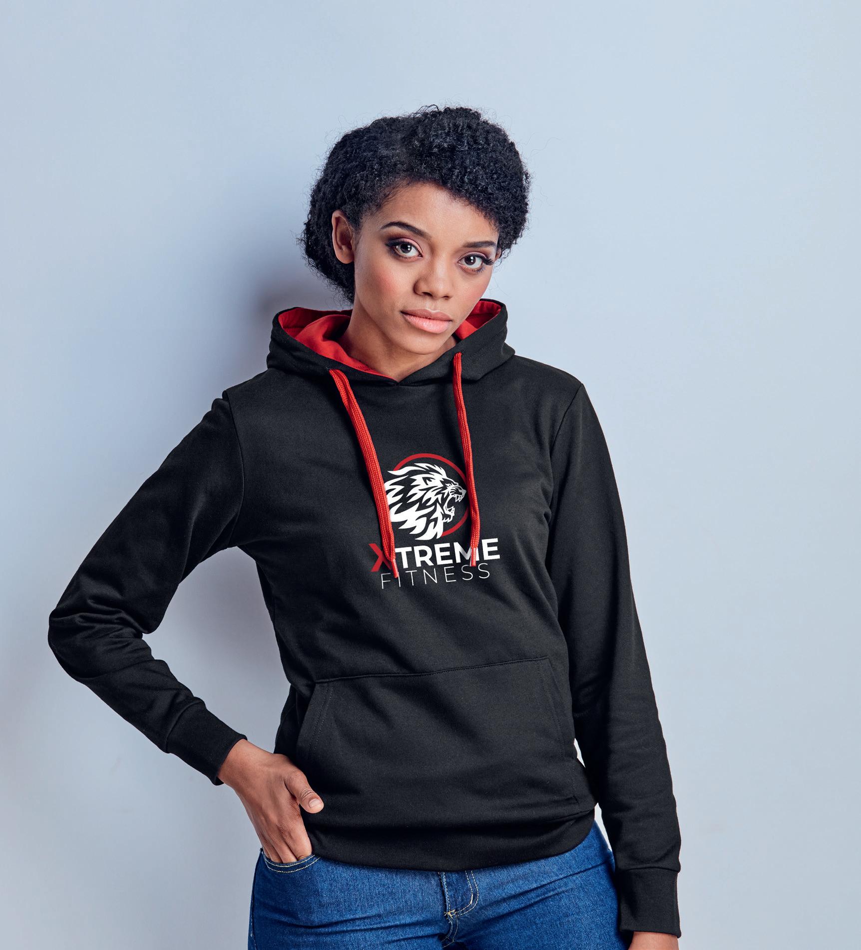 Weight 260g/m2 Fabric 60% cotton, 40% polyester, brushed fleece • two-piece hood with matching drawstring • kangaroo pocket with top stitching detail • self-fabric welt at cuff and hem • easy-care fabric