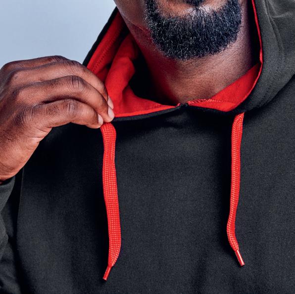 Weight 320g/m2 Fabric 60% cotton, 40% polyester, brushed fleece • two-piece hood with metal eyelets • contrast sleeves and drawstring • two front jet pockets with contrast tipping • full length zip • ribbed cuff and hem detail • easy-care fabric BL N R HALF CHEST (CM) STANDARD FIT S M L XL 2XL 3XL 4XL 48 51 54 57 60 63 66 40 39 SWEATERS, HOODIES, FLEECE & TRACKSUITS