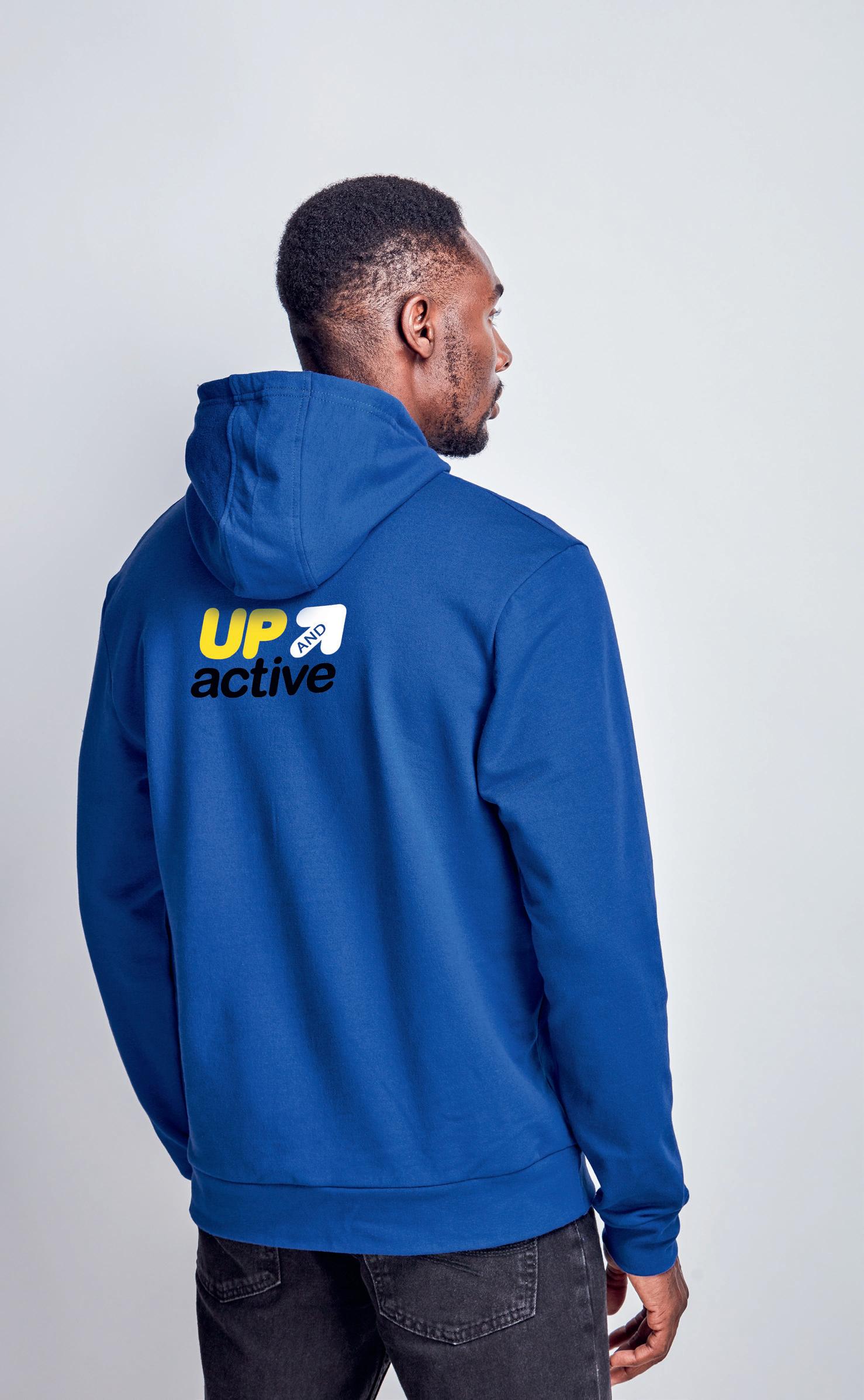 Weight 260g/m2 Fabric 100% polyester • polar fleece • front self-fabric kangaroo pocket • two-piece hood with matching drawstring • matching self-fabric sleeve cuff and hem