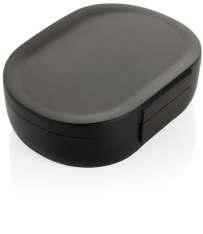 Kaheosaline PP plastikust ja bambusest kaanega einekarpide komplekt koos söögiriistade ja karbijagajaga. Karpide maht on 2 x 400 ml. Söögikarpe hoiab koos elastne pael. 18,6 x 10,6 x 9,8 cm.