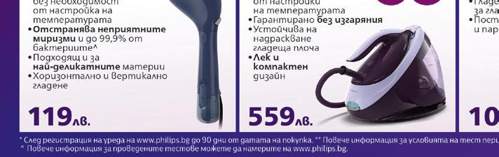 * Гаранцията на уредите е за срок от 2 години, за да получите допълнителни 3 години се изисква регистрация до 30 дни от датата на покупка. Условия и регистрация на dopulnitelnagaranzia.com. СУШИЛНЯ NT M11 82SK EU 8 кг ПЕРАЛНЯ СЪС СУШИЛНЯ NDD 11725 DA EE 11/7кг 1600 85 см 60 см 5 * години пълна гаранция 5 * години пълна гаранция ПЕРАЛНЯ NM11 846 WS A EU N 8 кг 5 * години пълна гаранция 85 см 60 см 85 см 60 см 999 939 689 11 x 90,81 лв. 8 x 86,12 лв. 11 x 85,36 лв. G A G 50NANO763QA UHD-4K Tелевизор 50'' (127 см) Резолюция: 3840x2160 UHD-4K Smart TV Web Os • You Tube • Wi-Fi: Вграден Alfa5 Gen5 AI Processor PMI 60 Hz • Active HDR • Nanocell • Magic Remote • HDR10 Pro Clear Voice Pro Цифров тунер: DVB T2/C2/S2 • 3xHDMI• 2xUSB • Оптичен изход 869.99 Предложенията са валидни от 24.02. до 16.03.2023 г. facebook.com/zora.bg instagram.com/zora_ltd тел.: 02/813 03 94, 02/813 03 78 facebook.com/zora.bg ONLINE МАГАЗИН www.zora.bg zora.bg 11 x 79,09 лв. 11 x 118,00 лв. 20 x 94,95 лв. 1199.00 Купи сега от Galaxy A13 • DUAL SIM • 6.6" (~16.76см) FHD+ Infinity-V дисплей • Осемядрен процесор • 128GB вградена памет • 4GB RAM • OS ANDROID 12 • Основна камера: 50MP+5MP+2MP+2MP • Предна камера: 8MP • Сензор за пръстов отпечатък • Батерия: 5000 mAh 319.00 5 x 63,80 лв.