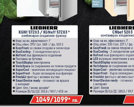 F A G години гаранция 144 см FTL213FWT0BG Хладилник с горна камера Обем: 213 л. (171/42) Енергиен клас: F Kонсумация (kWh/година): 222 Размер: 144х54х57 см години гаранция 399.99 F A G kWh годин 222 213л. GN 2303 Хладилник с горна камера Обем: 168 л (126/42) Kонсумация (kWh/година): 225 Енергиен клас: F Размер: 122х54х57 см 389.99 122 см години гаранция kWh годин 225 168л. F A G kWh година 268 245л. UI6 1W.1 Фризер • Обем: 245 л • Енергиен клас: F • Kонсумация (kWh/г): 268 • Система за охлаждане: Статична • Електронно управление • 6 прозрачни чекмеджета • Размер: 167х60х64 см 729.99 F A G 167 см HKR39C250 Готварска печка • Керамични котлони • Мултифункционална фурна със 7 функции и обем 66 л • 4 HighSpeed котлона, от които 1 разширяема в овал зона и