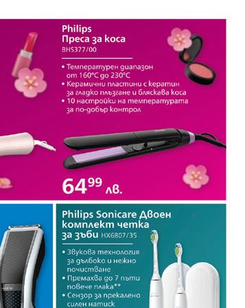Валидни от 24.02. до 16.03.2023 50QA4263DG ANDROID SMART QLED UHD-4K Tелевизор 50'' (127 см) Резолюция: 3840x2160 UHD-4K Smart TV • Android • Netflix • YouTube Netflix 4K • Wi-Fi: Вграден • Quad core процесор TPQ 2400 Wide Color Gamut Sound by ONKYO • Dolby Audio Цифров тунер: DVB T2/C2/S2 3xHDMI 2xUSB Оптичен изход 599.99 QLED E A G 50HAK5350 ANDROID UHD-4K Tелевизор 50'' (127 см) Резолюция: 3840x2160 UHD-4K Smart TV Android Net Flix HBO Go You Tube Digital Noise Reduction DD+ • HDR (HDR10, HLG) DOLBY VISION HDR • 2xHDMI 1xUSB 579.99 G A G G A G 43DM54UA ANDROID TV UHD UHD-4K Tелевизор 43'' (109 см) • Резолюция: 3840x2160 UHD-4K • Smart TV Android Wi-Fi: Вграден • 400 CPM DIGITAL NOISE REDUCTION Chromecast build-in • Dolby Vision • DTS-HD • Цифров тунер: DVB T2/C2/S2 • 2xHDMI входа 1xUSB 469.99 43/50*PUS7607/12 UHD-4K Tелевизор 43/50*'' (109/127* см) Резолюция: 3840x2160 UHD-4K Цифров тунер: DVB-T/C/S/MPEG4 Операционна система: Saphi • Smart TV Wi-Fi: Вграден Pixel Precise Ultra HD • 3xHDMI • 2xUSB • Dolby Vision • HLG F A G 599.99 749.99* 43/50*PUS8507/12 UHD-4K Tелевизор 43/50*'' (109/127* см) • Резолюция: 3840x2160 UHD-4K • Wi-Fi: Вграден • Smart TV • Android • HDR 10+ Ambilight 3 Dolby Atmos • Dolby Bass Enhancement • Dolby Vision • HLG • Micro Dimming Perfect P5 Perfect Picture F A G 979.99 1059.99* 55OLED707/12 OLED UHD-4K Tелевизор 55'' (139 см) • Резолюция: 3840x2160 UHD-4K • Wi-Fi: Вграден • Smart TV • Android • HDR 10+ Ambilight 3 Dolby Atmos • Dolby Vision • HLG Micro Dimming Perfect • P5 AI Perfect Picture • 120 Hz • G-sync VRR Freesync G A G 1949.99 43UA2D63DG ANDROID SMART UHD-4K Tелевизор 43'' (109 см) Резолюция: 3840x2160 UHD-4K • Smart TV • Android • Net Flix 4K You Tube • Wi-Fi: Вграден Quad core процесор • Total Picture Quality 2100 • DOLBY VISION HDR Sound by ONKYO • Dolby Atmos DTS • Цифров тунер: DVB T2/C2/S2 3xHDMI 2xUSB Оптичен изход VESA съвместимост: 100x100 HDR TRU Micro Dimming • TRU Flow 519.99 E A G F A G 24W2163DG SMART TV Tелевизор 24'' (61 см) • Резолюция: 1366x768 HD Ready • Smart TV Wi-Fi: Вграден • Цифров тунер: DVB-T/T2/C/MPEG4 • 1xHDMI 1xUSB • VESA съвместимост: 100x75 259.99 55DM55UQP2 QLED ANDROID TV Tелевизор 55'' (139 см) Резолюция: 3840x2160 UHD-4K Smart TV Android NETFLIX 4K You Tube • Wi-Fi: Вграден • Digital Noise Reduction Dollby Atmos Dolby Digital Plus (DD+) (E-AC3) 3xHDMI 2xUSB HDR (HDR10, HLG) Dolby Vision HDR Цифров тунер: DVB T2/C2/S2 629.99 F A G QLED