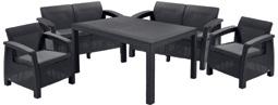 •2 бр. кресла: 75x70x79см, 2 бр. диван: 128x70x79см, маса: 161x95x75см, възглавници: 5 см, полиестер