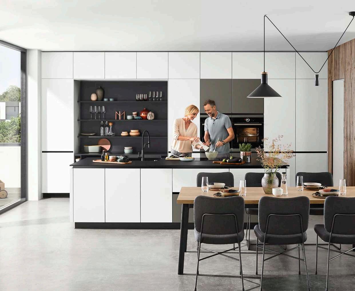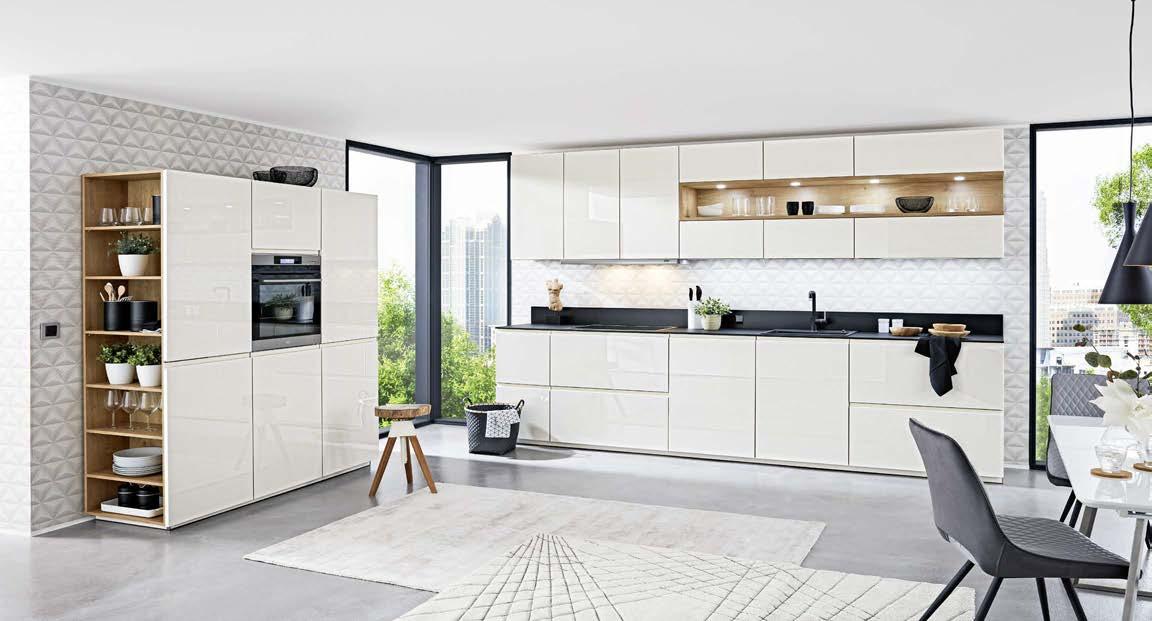 Повърхности със защита от следи от пръсти, Стенни облицовки с LED-осветление,електронно задвижване на вратите и чекмеджетата, потъващи контакти и много други. Богатият избор на аксесоари предоставя безгранични възможности за дизайн.