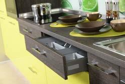 Тук има място за всичко! Интелигентните системи за чекмеджета, разнообразни механизми за специални приложения като ниша, килер, шкаф за бутилки, дори сервизна количка. Всичко от което имате нужда в кухнята е под ръка, подредено и достъпно. 09