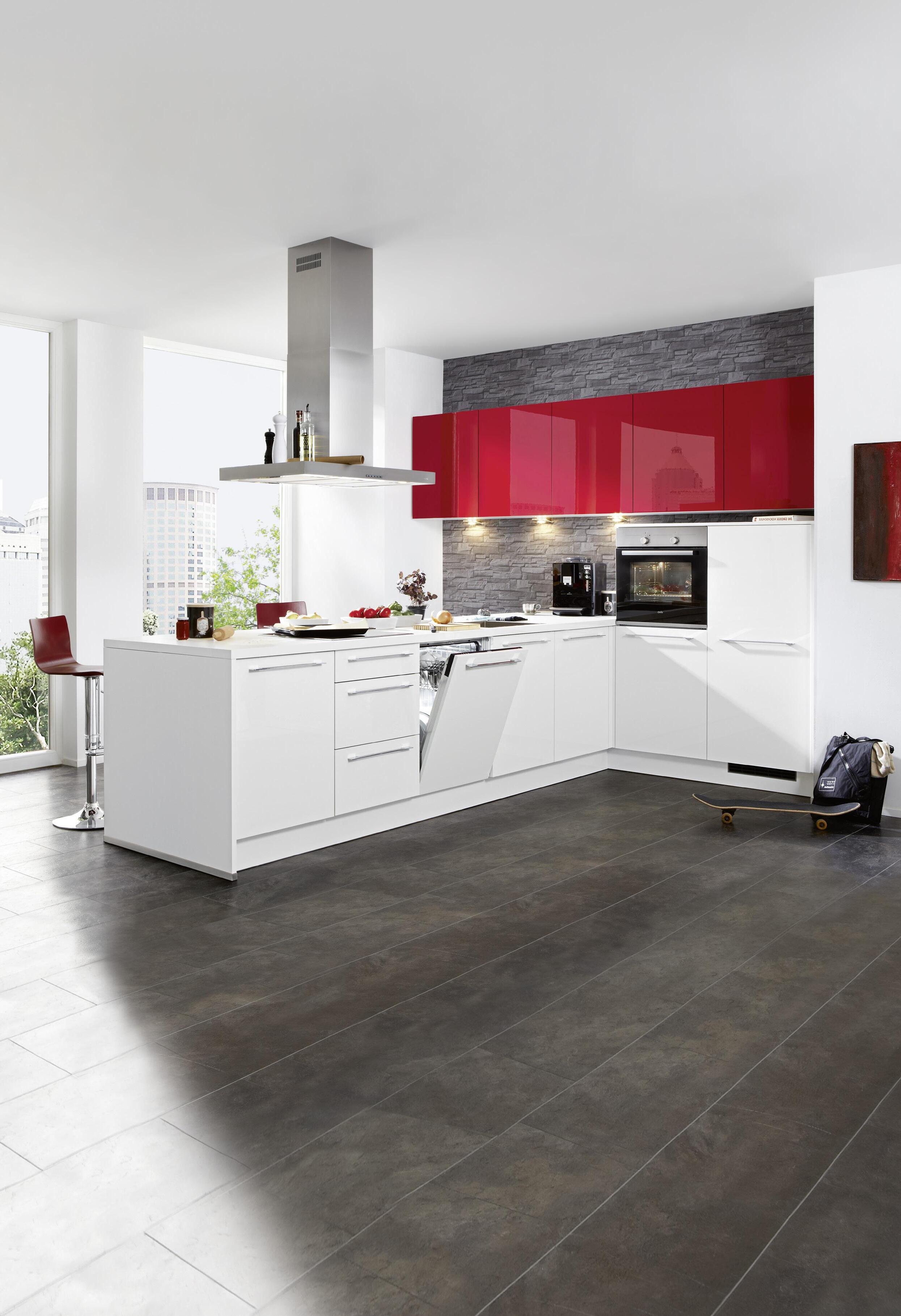 дизайн и стил в най-актуалните тенденции. Повърхности с лаково покритие бял супер мат и червен мат. Ефектно LED осветление
