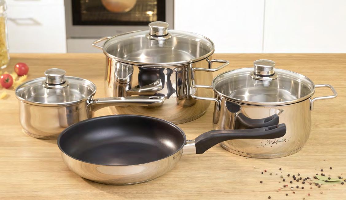 4: Habitium прибори за хранене 30 части Съдържа: 6 бр. нож за основно ястие, 6 бр. лъжица за основно ястие, 6 бр. вилица за основно ястие, 6 бр. лъжички за чай/кафе, 6 бр. десертни вилички 229,- 129,- ( 56868050052 ) Cromargan®стоманаНеръждаемаCromargan®стоманаНеръждаема18/1018/10 1: Сет тенджери 7 части Съдържа: 1 бр. тенджера с диаметър 16 см, вместимост 1,5 л; 1 бр. тенджера с диаметър 20 см, вместимост 3,5 л: 1 бр. тенджера с диаметър 24 см, вместимост 6 л; 1 бр. тиган с вискококачествено незалепващо покритие с диаметър 24 см; 3 бр. стъклени капаци с размери 16 см, 20 см, 24 см 339,- 229,- ( 56867020017 ) 2: Сет 2 тигана и шпатула Ø24 / Ø28 см 219,- 129,- ( 56867010047 ) Cromargan®стоманаНеръждаема18/10 219,2 СЕТ 2 ТИГАНА И ШПАТУЛА 129,-41%СПЕСТЕТЕ 3: Тава с капак 28 см пригодена за употреба върху всякакъв вид котлони, включително индукционни 149,- 89,- ( 56867030010 ) 149,3 ТАВА С КАПАК 28 СМ 89,-40%СПЕСТЕТЕ 18 10 18 10 339,1 СЕТ ТЕНДЖЕРИ 7 ЧАСТИ 229,-32%СПЕСТЕТЕ Направи всеки кулинарен момент специален Cromargan®стоманаНеръждаема18/10 229,4 ЗАПРИБОРИХРАНЕНЕ 129,-100,-СПЕСТЕТЕ 18 10 18 10