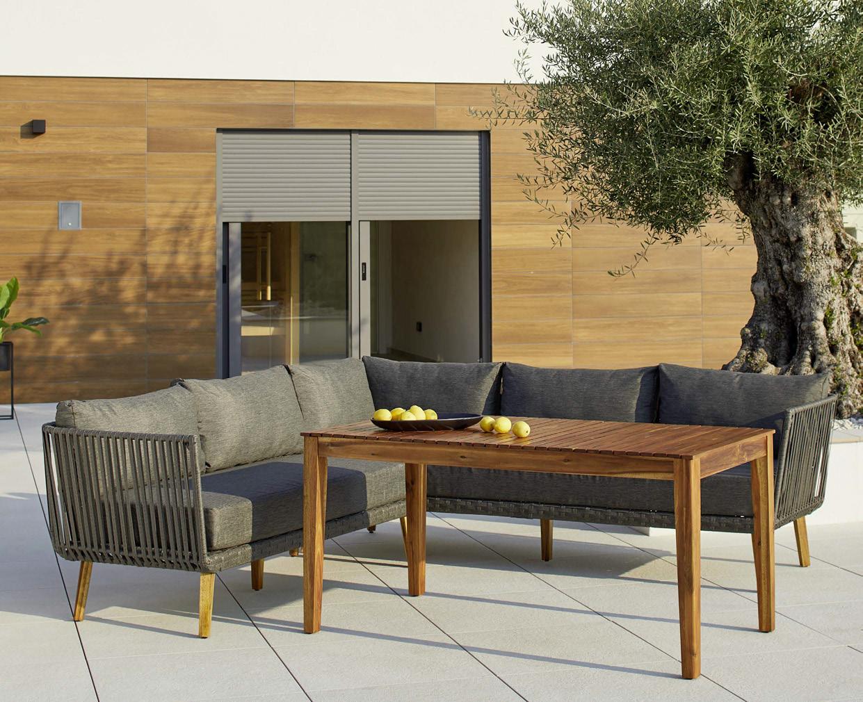 1: Градински ъгъл със здрава алуминиева конструкция, елементи от естествена евкалиптова дървесина и включени 11 броя възглавници, цвят антрацит, 200/200 см 2999,- 1699,- ( 80063020003 )
